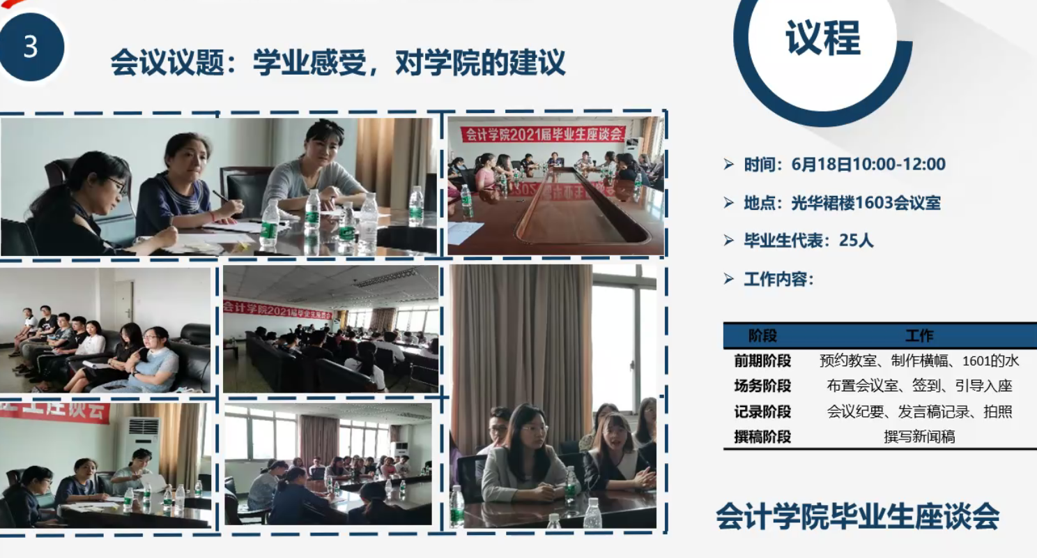 6月23日,2020-2021学年度第二学期会计学院新媒体中心总结大会于通博楼D201会议室召开。会计学院新媒体中心指导老师王慧出席,新媒体中心全体成员共同参加了此次大会。 会议伊始,与会人员观...