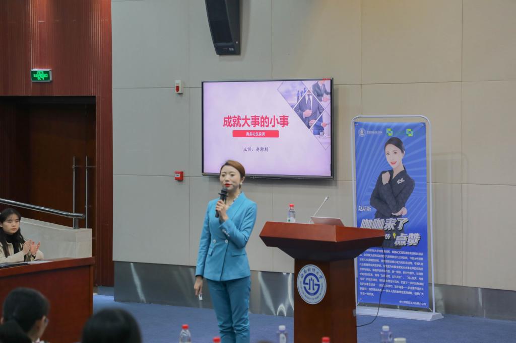 讲解全盘结束后,掌声雷动。在第四期“咖咖来了会点赞”讲座中,赵斯斯老师对商务礼仪深入浅出的讲解让在场观众获益匪浅,点拨了大学生面试时对礼仪要求的迷惘困顿。“人无礼则不生,事无礼则不成”掌握好礼仪是每个人的必修课。只有懂礼守礼,我们才能更好地塑造自我形象,营造和谐氛围。(文/上官恩楚 谢欣然 图/王轩宇 杨培 责编/王慧 审稿/张太富)