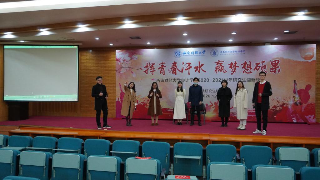 晚会的上半章为“勤深耕”,这一主题寓意着为了能看到风雨之后的彩虹我们需要脚踏实地、埋头苦干。在这一环节中,各种节目轮番登场,异彩纷呈。首先,MPACC3班的合唱《燃烧我的卡路里》以深沉而有趣的方式将观众带入了减肥者的世界,这也是不少女生减肥生活的真实写照。紧接着,MPACC2班的歌曲串烧《下班KTV》以情景剧的形式演绎了一段甜美的爱情故事。来自会计科硕的合唱《嘿,要不要来开个会》生动形象地展示了西财研究生的真实生活,引起了不少观众的共鸣。上半章的最后一个节目是来自MPACC1班和MPACC3班的《芒种》,舞蹈演员们优美而灵动的舞姿引人入胜,深深感染着屏幕前的每一位观众,将晚会推向了高潮。