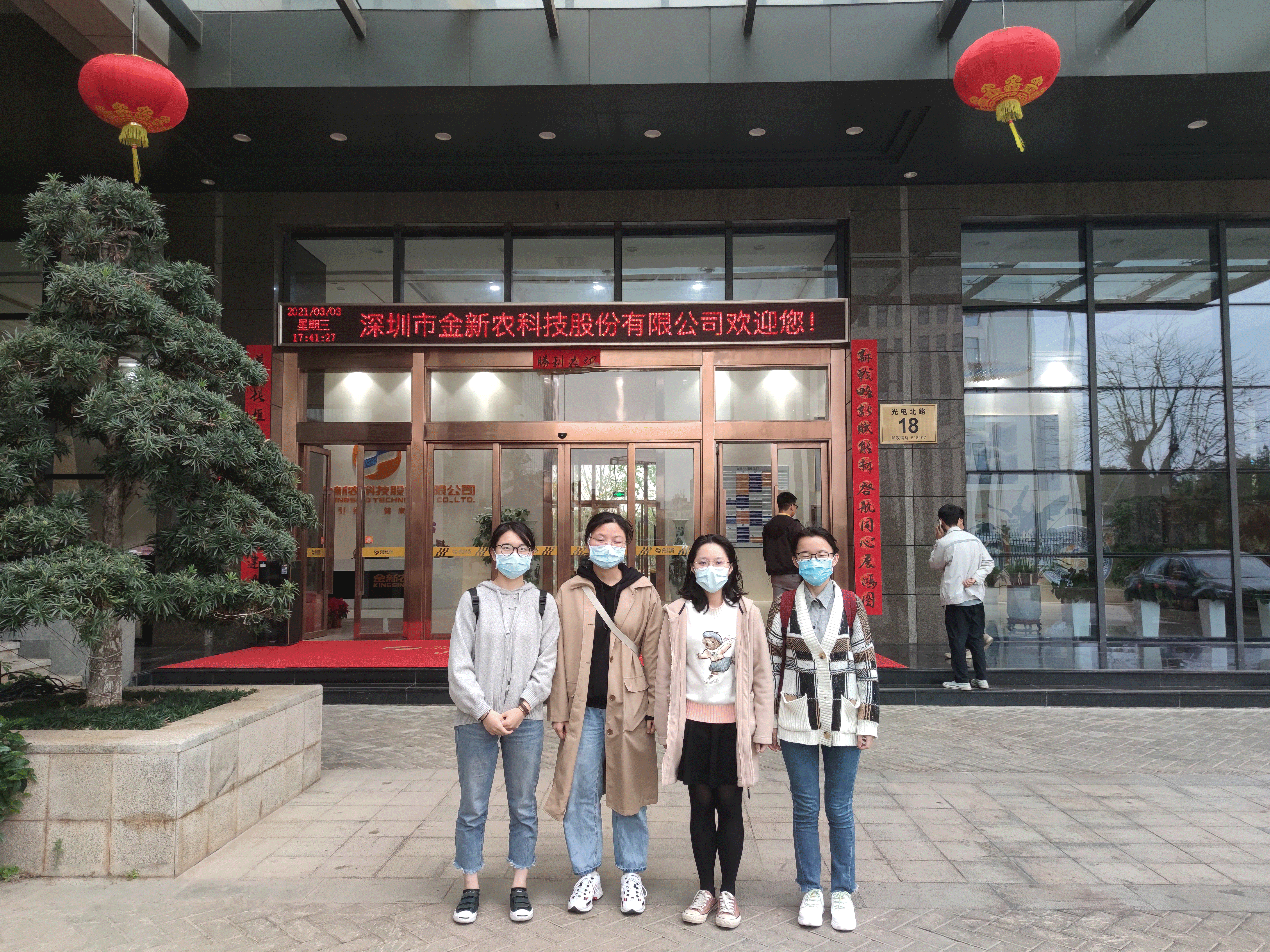 近日,我院2017级四名学子赴深圳市金新农科技股份有限公司,开展为期三个月的实习实践。深圳市金新农科技股份有限公司是一家拥有养殖、饲料、动保、互联网四大主营业务的中国现代化科技型股份制上市公司、中国现代化科技型集团公司、国家级高新技术企业。