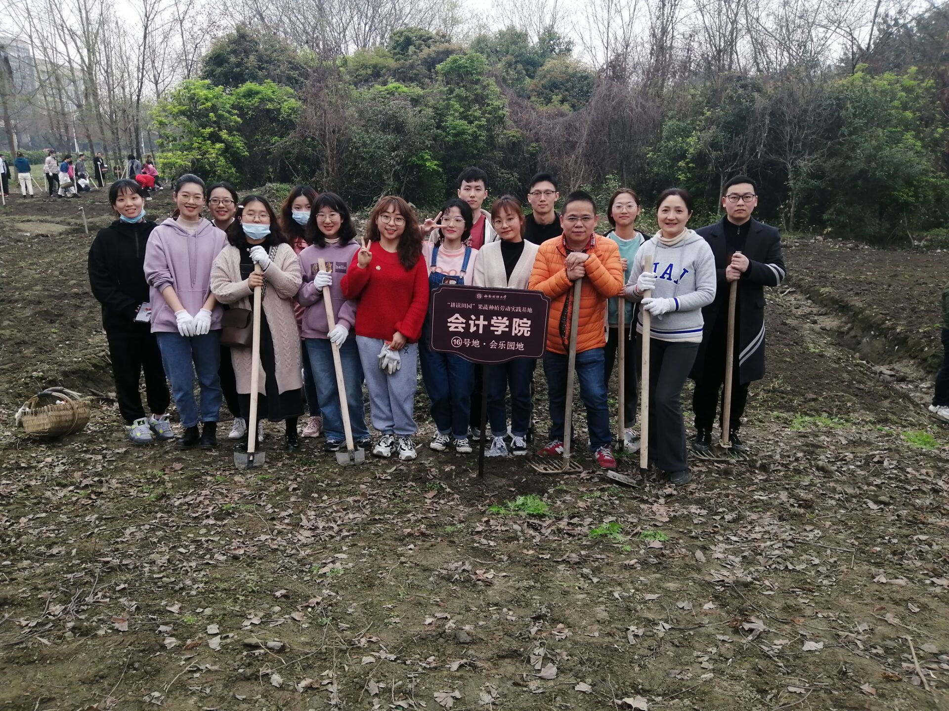 劳动结束后,师生合照,交流耕地之喜乐,并祝愿“会乐园地”种植劳动实践基地在会计学院同学们的共同劳作下结出希望的果实。本次劳动教育实践活动旨在鼓励同学们走进田间地头,通过亲身种植果蔬,在校园日常生活和劳动实践中,体悟四季农时的变化和果蔬种植知识,同时在实际行动中,践行环保理念,为建设美丽西财贡献力量。