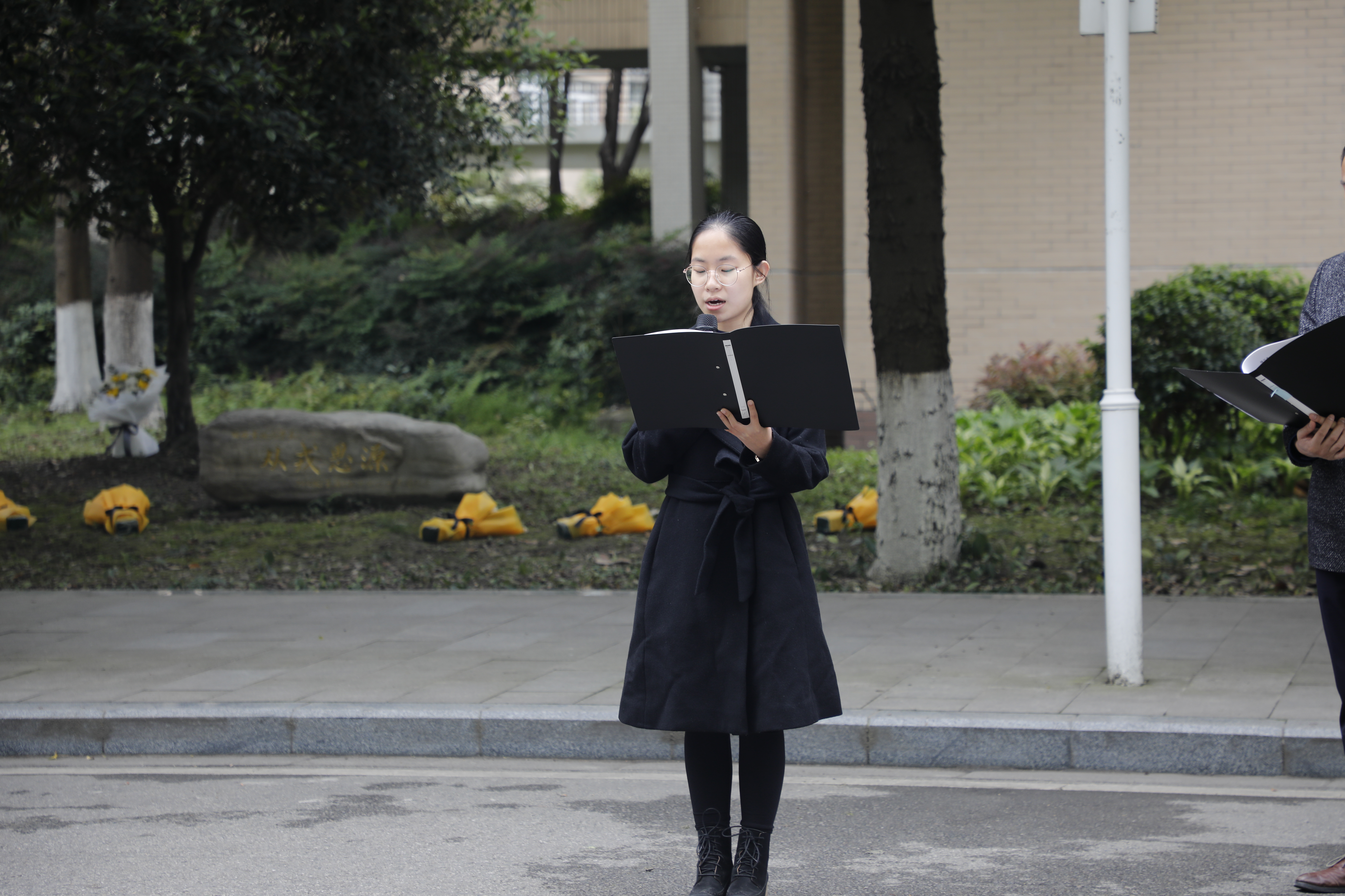 缅怀仪式上,主持人刘坤老师向大家介绍曹顿山烈士的英雄事迹,全员肃立,集体默哀一分钟。礼毕,会计学院分党委书记刘晓彬老师致辞,他强调:“习近平主席说:‘一个有希望的民族不能没有英雄’,我们要树立起爱党爱国爱人民的新时代爱国思想,让党员生命绽放绚丽的时代芳华。”随后,同行的志愿者徐晓燕女士发表感言并赠书,追忆烈士事迹,呼吁大家参与志愿工作。学生代表刘泽玥同学号召西财学子用中国青年精神担起历史重任,知行合一,砥砺前行。“天地英雄气,千秋尚凛然。”校园内的“英雄树”茁壮成长,象征英烈的革命精神和英勇事迹将永恒流传。