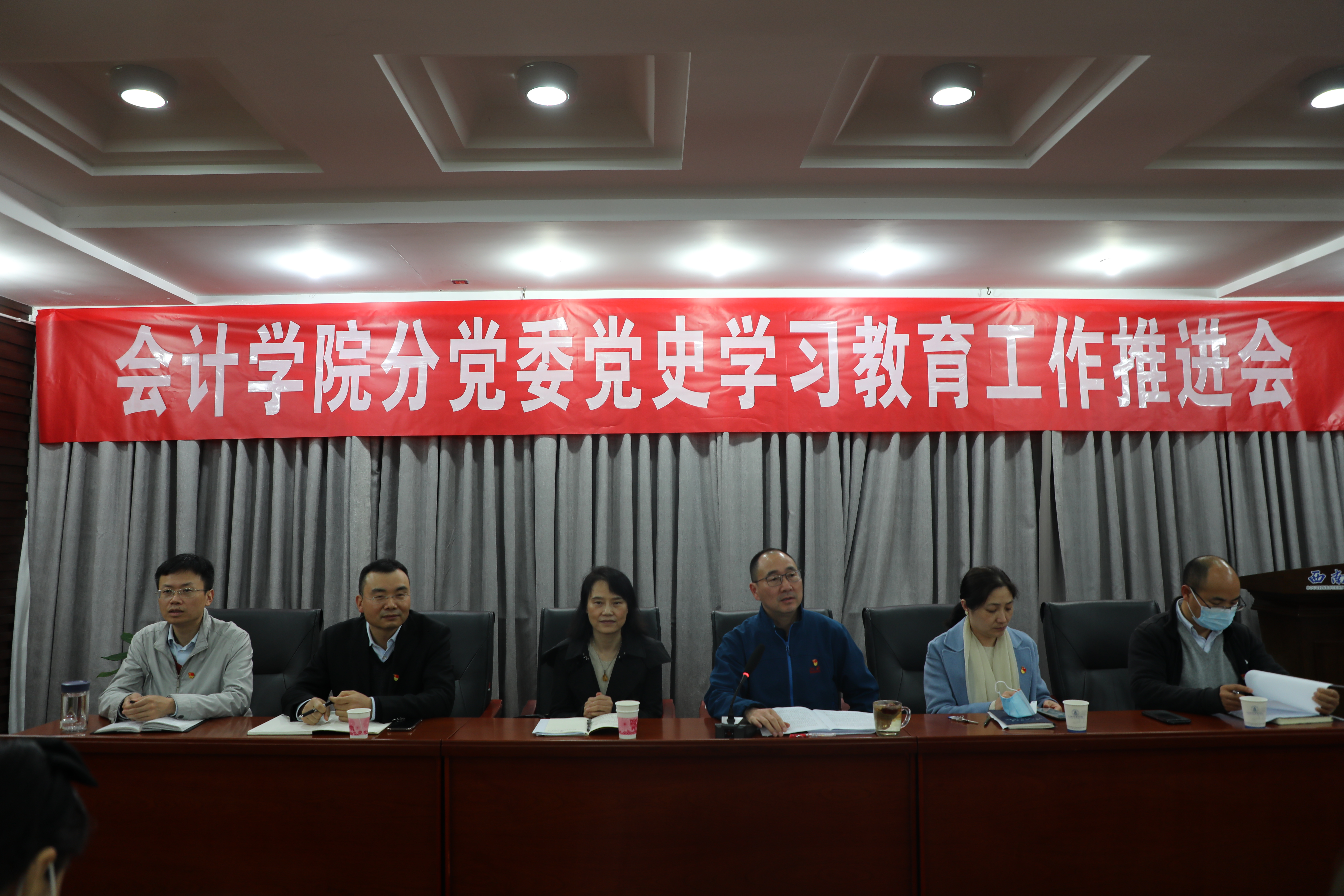 今年学校党委安排党史学习教育工作以来,会计学院积极响应踊跃参加,召开了多次学习会议进行部署和动员。刘晓彬书记说,为高标准高质量完成学院党史学习教育各项任务,在传达学校关于党史学习教育相关文件的精神与要求的同时,将抓实各党支部支委及党员的学习教育、以带动班团组织认真全面地完成党史学习教育的要求;强调了党史学习教育的重要性,申明了党史学习的目标要求:坚持学史明理、坚持学史增信、坚持学史崇德、坚持学史力行;鼓励动员大家将集中学习和个人学习相结合、将党史学习创新性地融入各项工作,推动点的突破、线的联动和面的质改,由点入面系统性统筹学习;提出会计学院将力争做好示范带动作用,围绕学校党委《关于开展党史学习教育的实施方案》,从专题学习、政治引领、专题培训、实践活动及工作成果五方面规划学院开展党史学习教育活动的蓝图,注重工作与党史学习教育的融合、注重典型宣传与品牌建设重点突破。