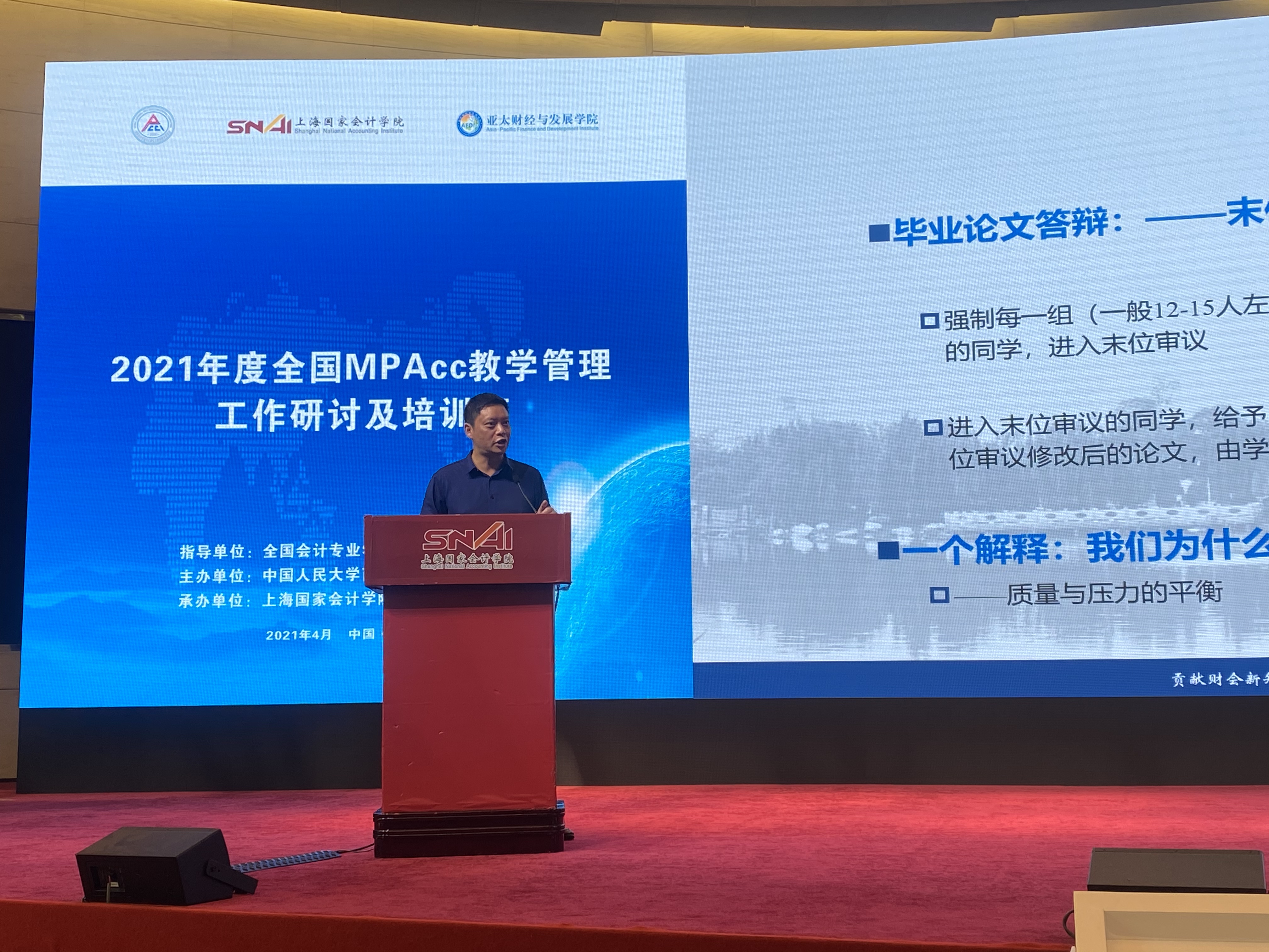 2021年度全国MPAcc教学工作研讨与培训会于4月29日至30日在上海国家会计学院举办。会上,全国会计专业学位研究生教育指导委员会(以下简称“会计教指委”)向通过会计专业学位教育质量认证(Accreditation for Accounting Professional Education Quality,简称“AAPEQ”)的院校颁发了证书,我院获评A级成员单位。