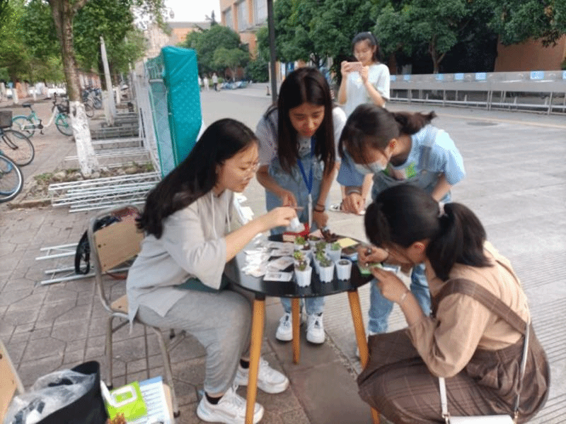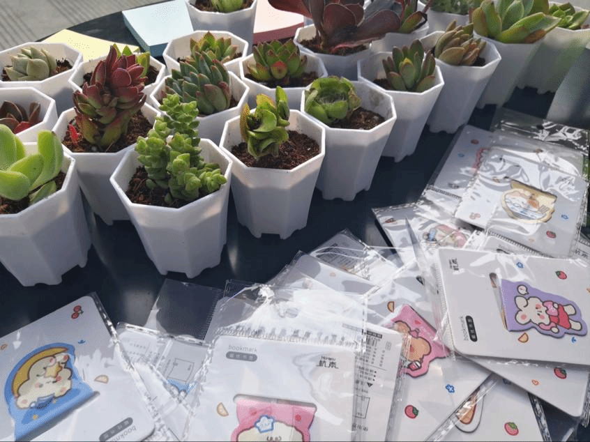 围绕减压减负主题,活动包含以下环节:首先为活动主题和内容介绍。随后,同学们在提供的便利贴上写下自己的烦恼、快乐这些情绪因子,抑或是母亲节的美好祝福,留下自己的烦恼,即可带走由会计学院同学们在劳动素质实践中种植的多肉一盆或者是小书签一个。以期参与者释放不良情绪、有意识去减轻潜在的压力,进一步给参与同学带来良好活动体验和对解压的重视。