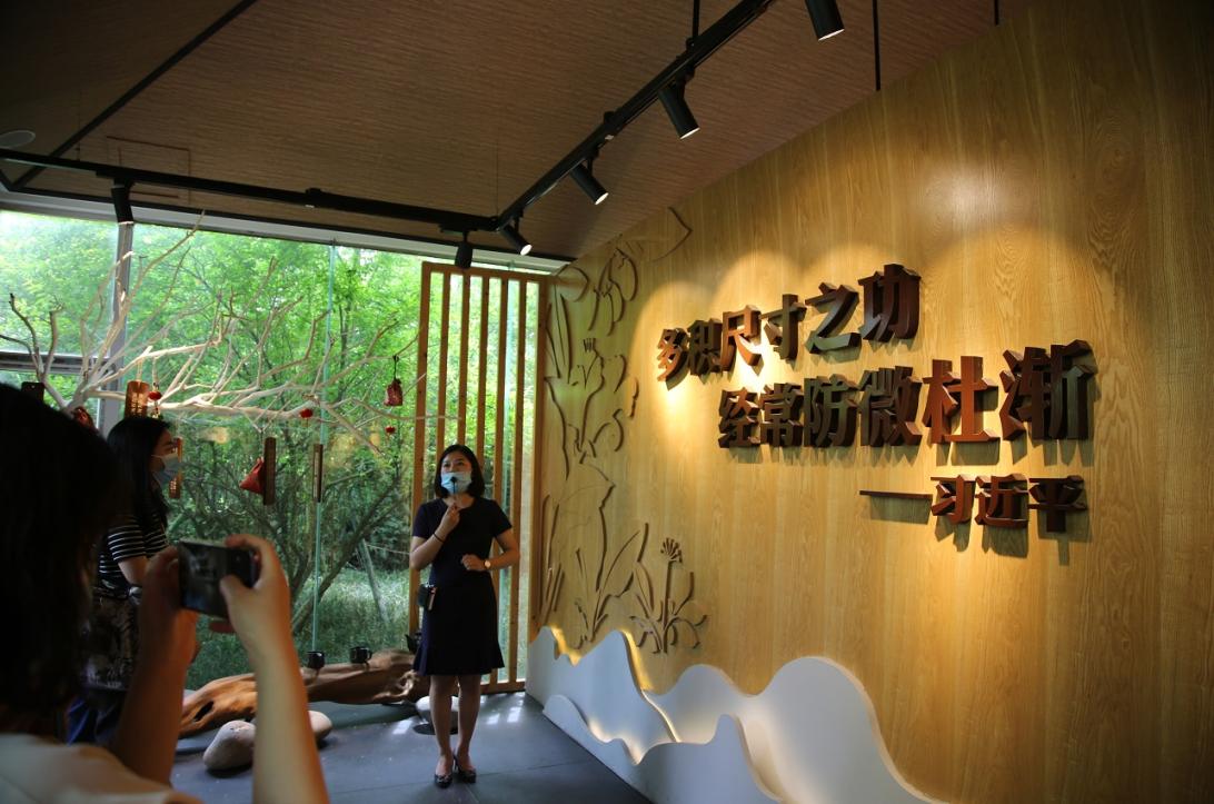 防微馆以习近平总书记语录“多积尺寸之功,经常防微杜渐”中“防微”二字为名,将花木文化、中医文化与廉洁文化相结合。善除害者察其本,善理疾者绝其源,中医中“防微杜渐,未病先治”的防病原理,阐释了当今工作中监督考察的重要性。古代中医有“出汗排毒、针灸通脉、猛药去疴、壮士断腕”四种防治措施,类比今天监督执纪的“四种形态”,深入剖析了疾病与腐败的共通之处,指出了反腐之道。