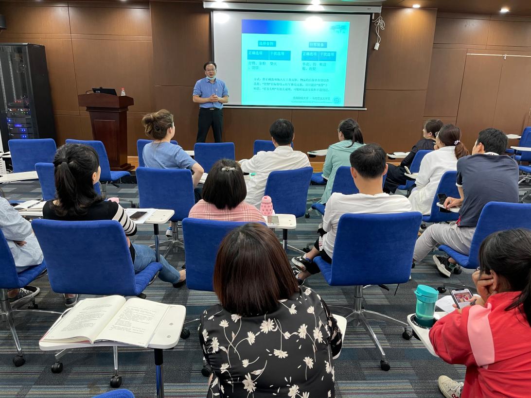 曾道荣系统梳理了习近平总书记提到“新长征”,推荐重要学习文献文章,指出要将学党史和辅导员思想政治教育工作联系起来,在党史学习要有高度、深度、广度,要带着实际问题学,坚决做到两个维护,坚定理想信念,明晰培养什么样的人、为谁培养人,引领青年学子前行奋斗方向。在提到对《中国共产党普通高等学校基层组织工作条例》学习时,强调辅导员一定要加强对《条例》的深入理解,以学生党支部建设为抓手,切实全面提升学生党建质量。