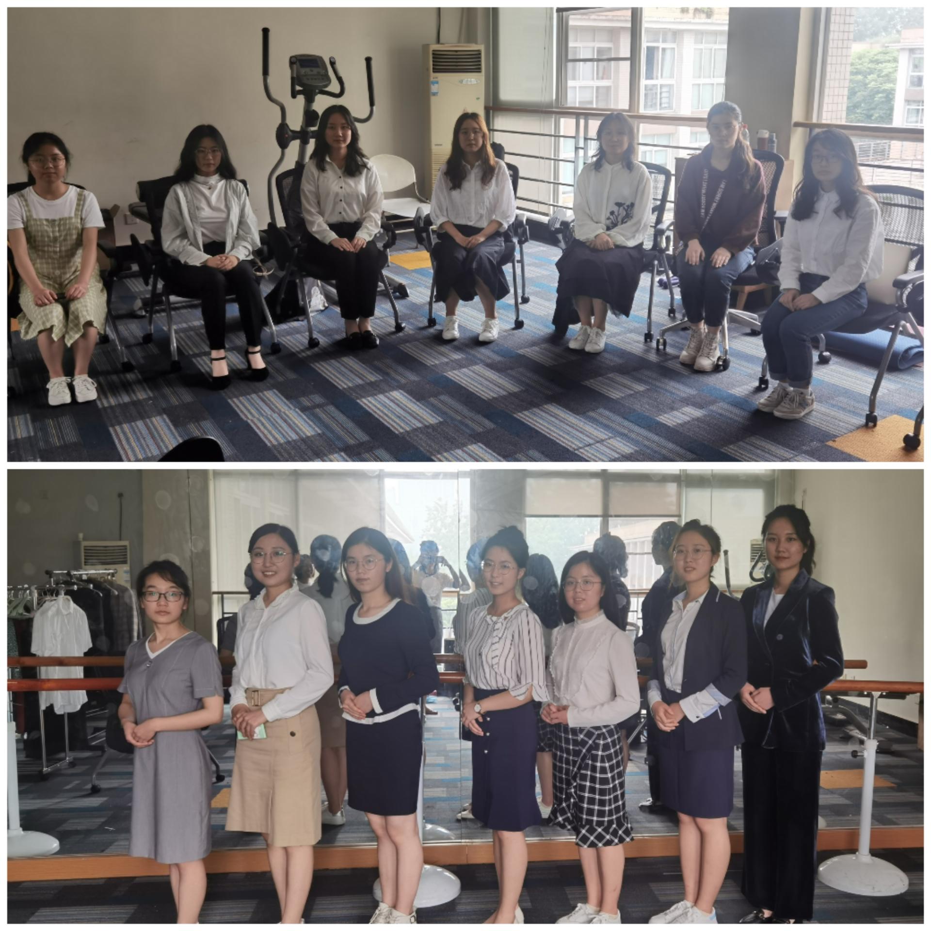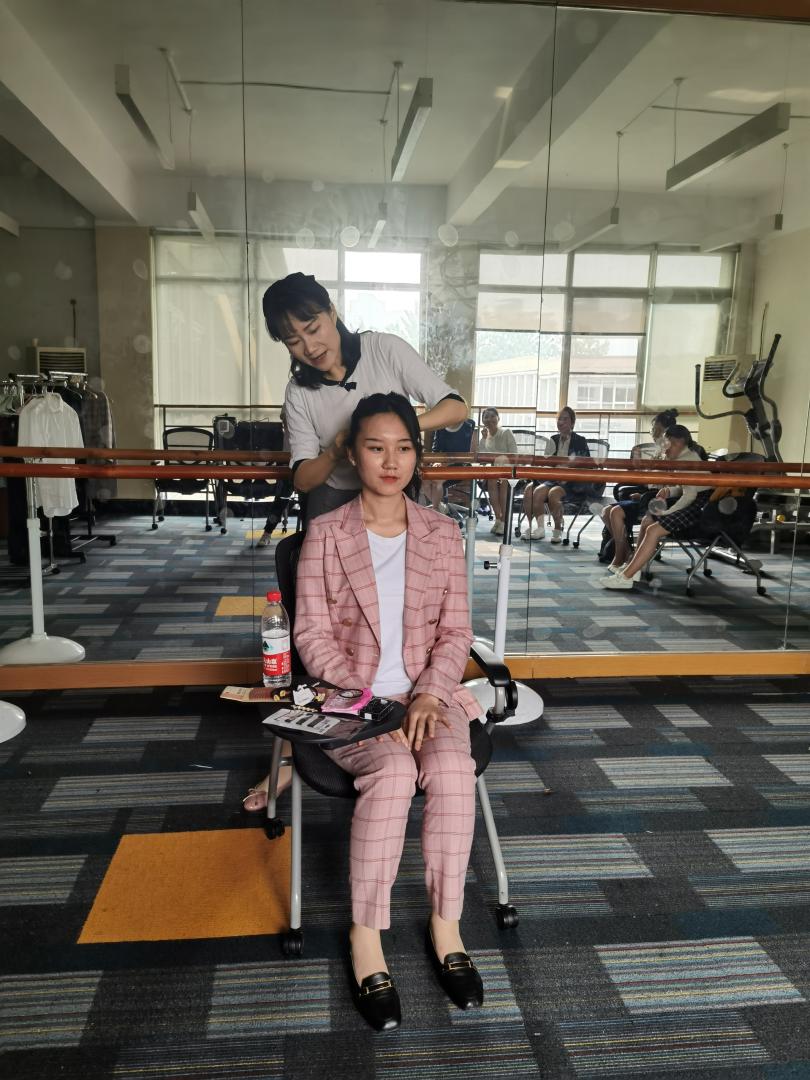 活动围绕职业形象塑造、优雅仪态养成等向同学们推荐适合自己的轻正装及各项搭配,包括衬衫、外套、鞋子等配饰。解决同学们不会穿搭配的问题,突破千篇一律的求职服饰搭配,穿出时尚与自信。期间,刘晓林老师对到场的男生提出了一对一的着装、形象改造建议;讲解了女士职业着装规范和面试场合的坐姿仪态规范,并为每位女生做出发型建议与化妆示范。随后女同学们按照讲解进行了自我搭配实践并完成相互交流评价。