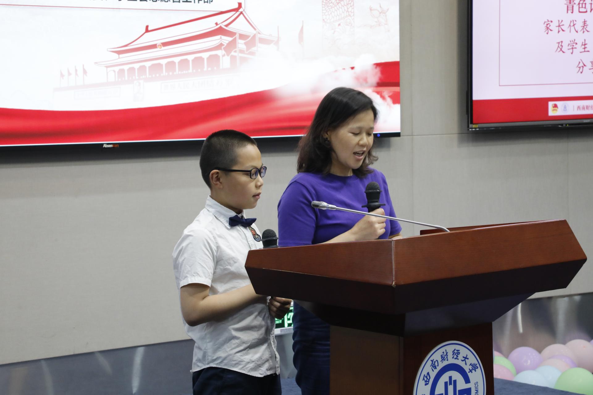 青色计划家长代表王会平,赞扬西财学子用真心传递温暖、用青春践行奉献的志愿精神。其子卢布小朋友也对哥哥姐姐们所给予的在学习和生活上的指引表示感谢。