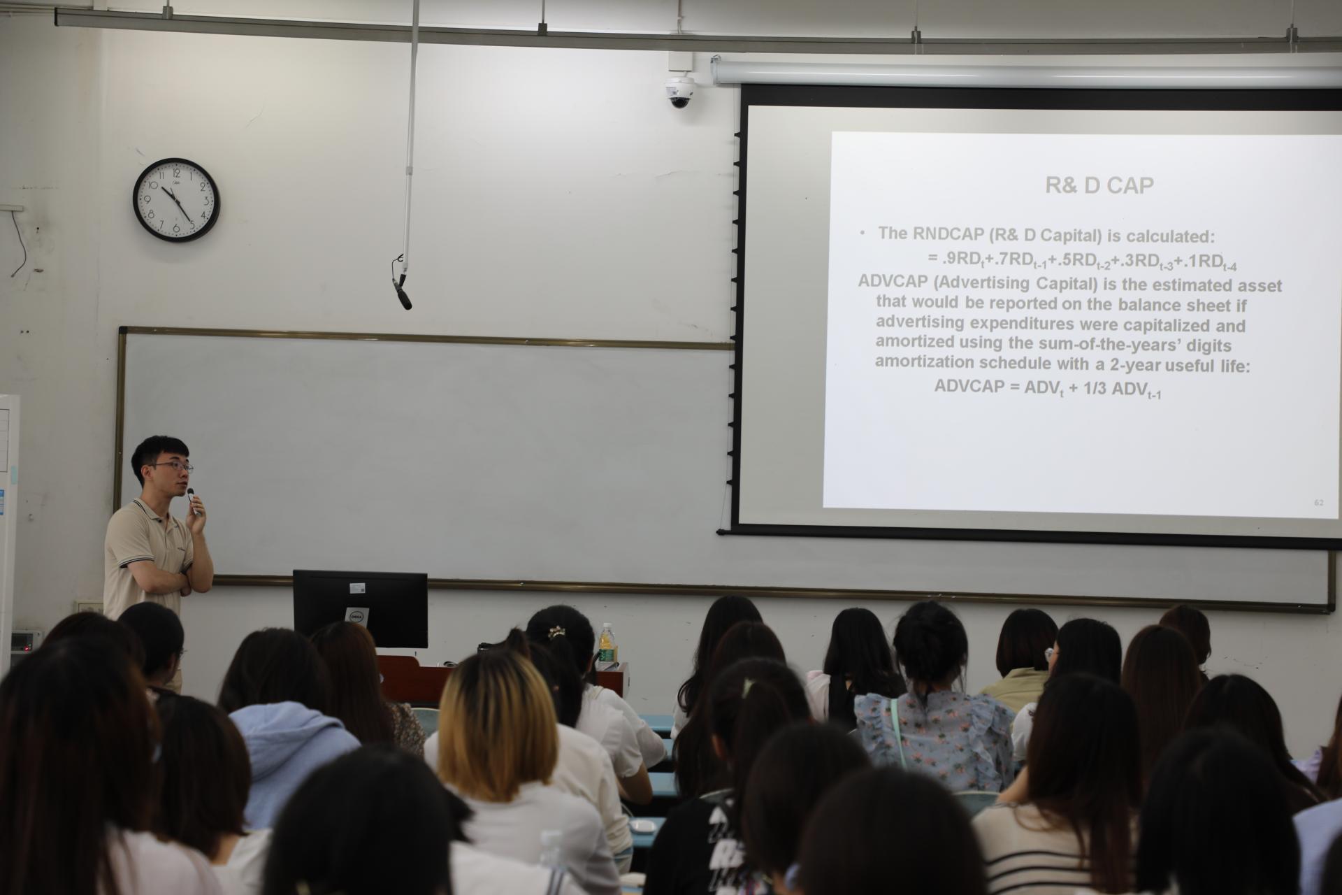 与此同时,四川财经职业学院的学生们前往颐德楼H203参加陈逸飞老师的《会计理论》课程教学,感受我校生动有趣又不失学术严谨的课堂。随后,会计学院副教授、大数据会计教学与研究中心主任李贺在通博楼D301开展了《财务共享背景下的财务工作职能转变和人才需求转型》主题讲座,讲述了在财务信息化、数字化转型条件下如何培养企业需要的新型财经人才。我校研究生伍文静学姐就同学们所关心的考研问题作出经验分享以及疑惑解答,同学们受益匪浅。