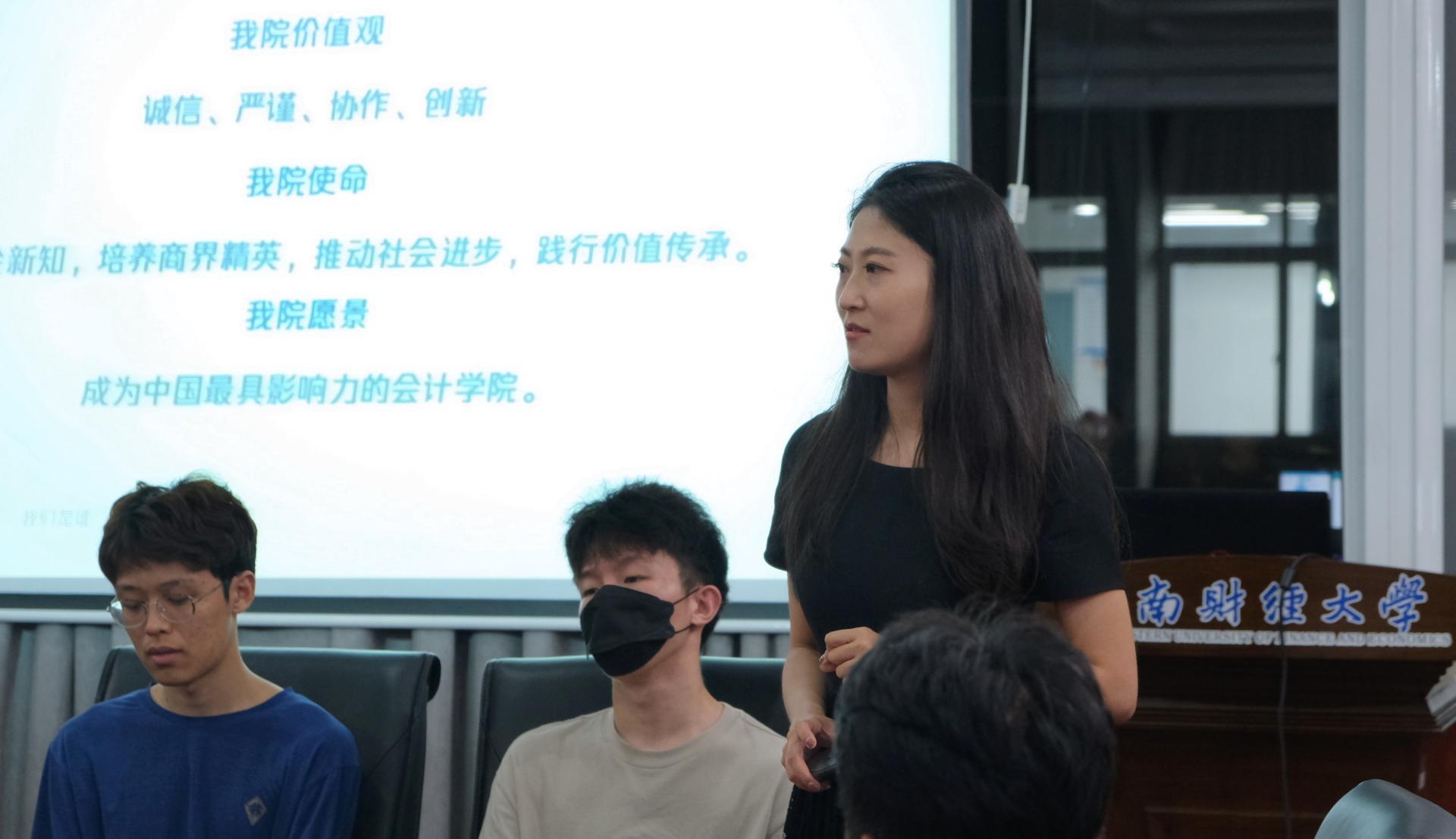 会议伊始,王慧老师向所有新加入的成员表达了诚挚的欢迎,希望他们能为学院校友工作贡献自己的力量。与此同时,王慧老师还向大家简要介绍了会计学院基本情况,列举了许多优秀校友,让同学们对校友和会计学院有了更强的自豪感。对于校友工作,她表示,在座每位同学都将代表会计校友工作中心的形象,拿出的东西要代表自己的最高水平。然后,结合当下学院发展的使命与愿望,王慧老师对团队未来工作的开展总结出七点准则,以此来激励和规范同学们。