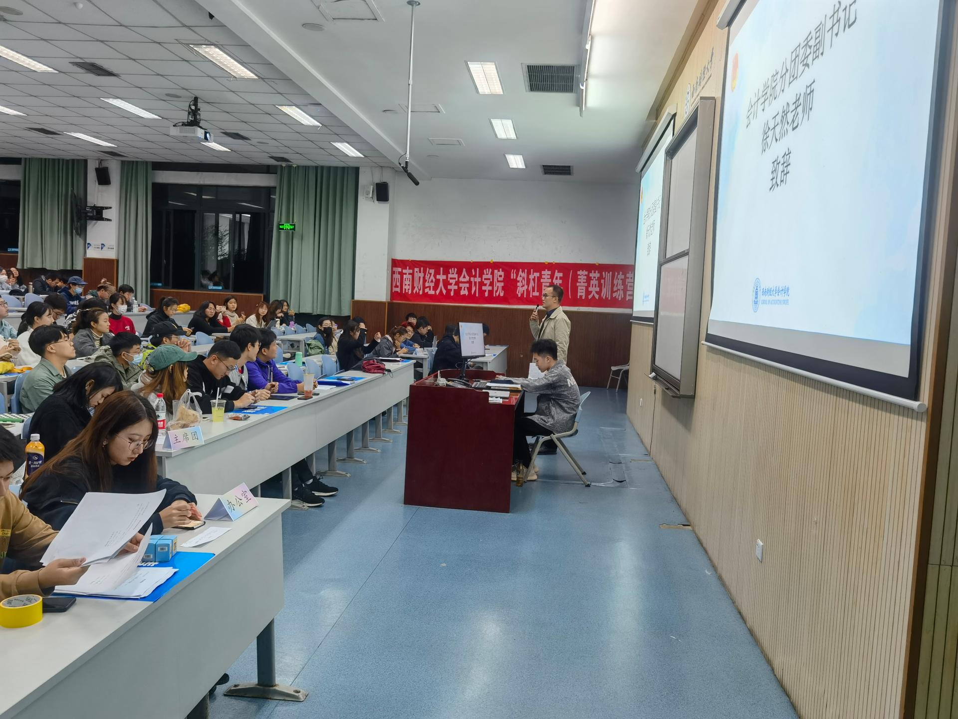 本次会议中,会计学院分团委副书记徐天然老师在致辞时提及国家对当代大学生的发展要求,指出当代青年人应当响应时代号召,有所作为,强调青年应注重培养自我思辨能力,提高社会责任感,树立文化自信,坚持与时俱进,自觉践行社会主义核心价值观。