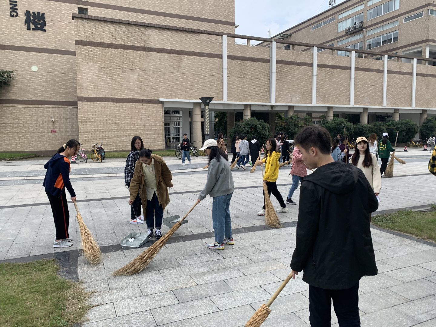 另外,在梁清源老师的带领下,会计学院每周轮流安排班集体参与“我校园 我爱护”校园卫生清扫活动。寒风乍起,气温骤降,一夜之间,校园里落满了树叶,金黄的银杏叶铺在绿色的草坪上,别有一番景致的同时也给卫生清扫工作带来了烦恼。在“我校园 我爱护”活动的号召下,同学们积极参与清扫所属区域路面、绿化带和树池内的垃圾、枯枝、落叶等杂物,将区域清扫的干干净净。在清扫维护过程中,同学们分工明确、条理清晰,有负责拿扫帚清扫落叶的、有负责拿撮箕规整干净的、有撑起垃圾袋扫尾清理的,劳动热情高涨。为保障大扫除工作成果长效化,中心还安排学生开展日常维护劳动,每天巡视清理责任区域内的白色垃圾,清理区域内建筑物和宣传栏违规张贴、发放的广告、传单等。