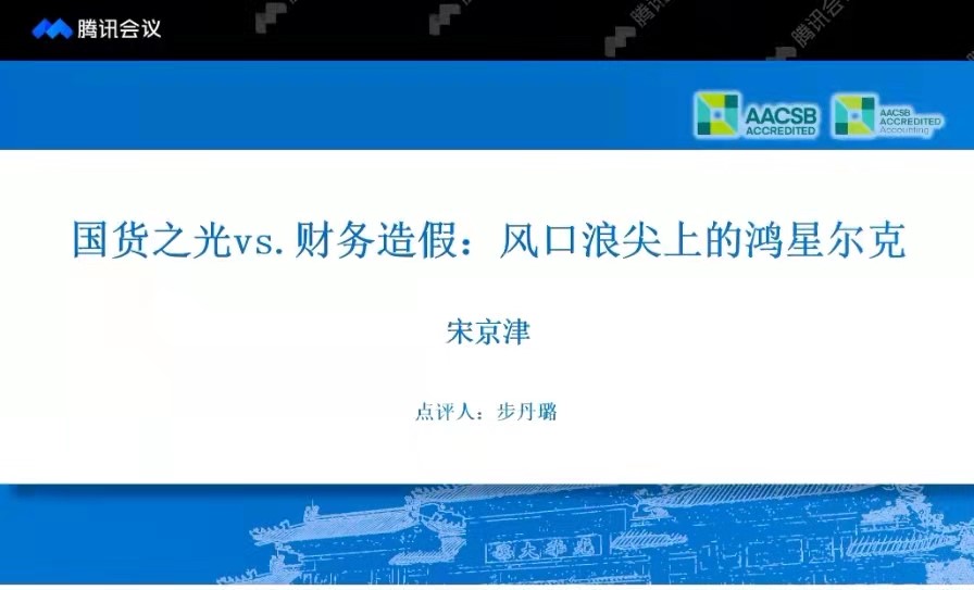 我院步丹璐老师和何丹老师则分别受邀点评了来自于江西财经大学宋京津老师的《国货之光Vs.财务造假:风口浪尖上的鸿星尔克》和来自于扬州大学缪艳娟老师的《并购商誉之谜——以美年大健康为例》两个案例。两位老师在提出完善意见之外,也分享了自己在案例开发方面的心得与体会,受到了案例开发者的肯定。