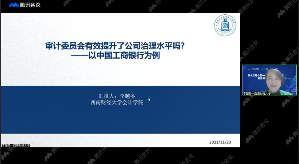 2021年11月26日至11月27日,由全国会计专业学位研究生教育指导委员会指导、中国人民大学商学院主办、江苏大学财经学院承办的“第十三届中国MPAcc教育发展论坛暨案例研发与教学研讨班”通过线上会议的方式举行。本次会议吸引了来自全国各地180多所高校的近2,000名教师参加,除大会主题报告以外,本次会议分论坛共汇报32篇MPAcc研究和教学案例。我院共四位老师受邀参与了本次研讨班:李越冬老师和王志老师受邀汇报案例;步丹璐老师和何丹老师受邀点评嘉宾。