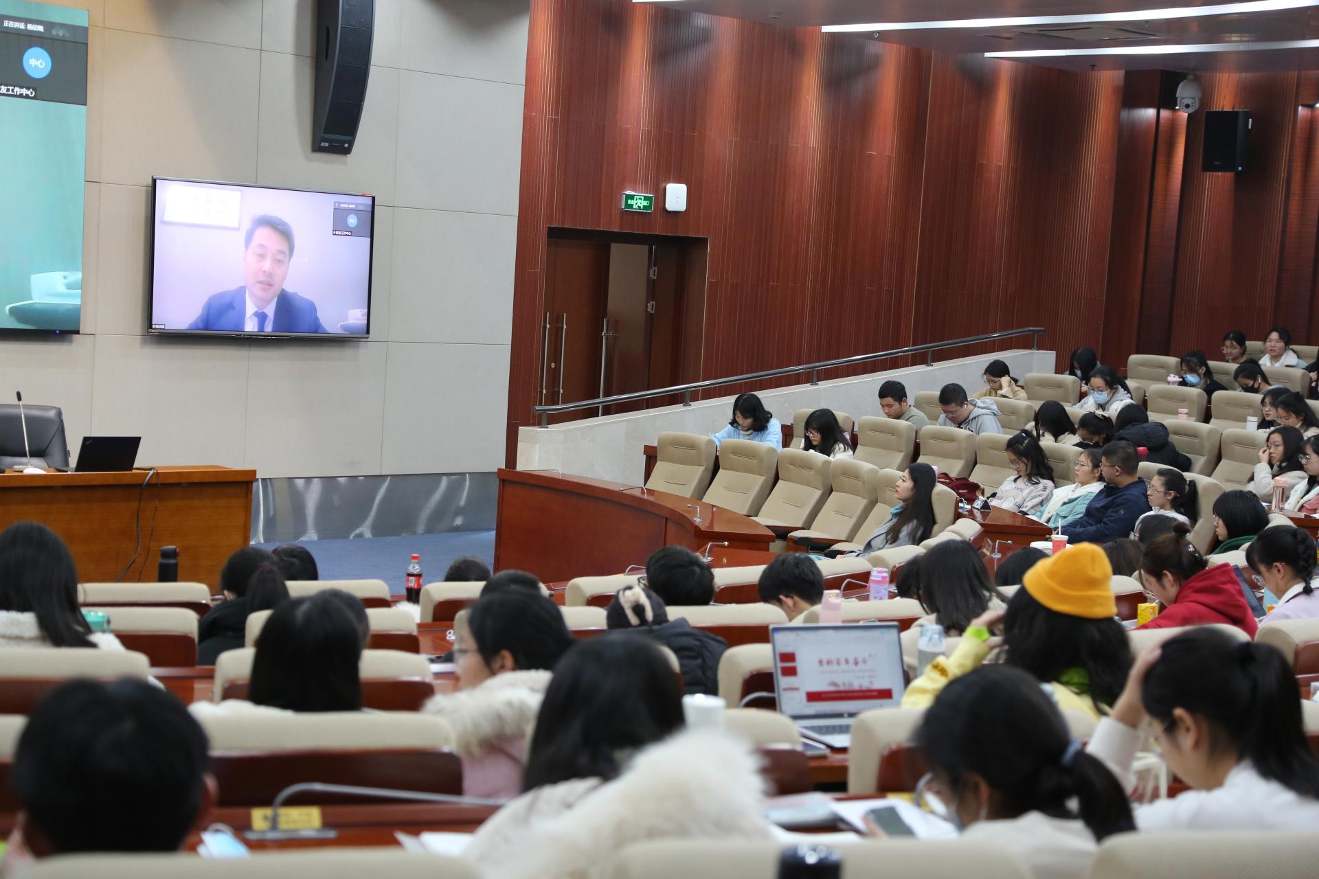 会上,杨欣刚先生从富邦华一银行的介绍、外资银行与内资银行的主要区别以及职业体会分享这三个方面展开。首先,杨欣刚先生对富邦华一银行进行了简单介绍,包括其涉猎的业务及其特色、相关业务领域的优势和员工队伍的组成。紧接着又从多方面分析了外资银行和内资银行的区别和各自的优势,并解释了其中存在的误区,帮助同学们了解各类银行的区别以便于结合自身情况对将来就业有更清晰的规划。最后,杨欣刚先生就自己的工作经历与同学们分享了职业能力要求和职业心得体会,重点提出要保持身体健康、沉下心认真积累(知识、人脉、管理经验等)并养成终身学习的习惯,表达了对西财学子的殷切期望。