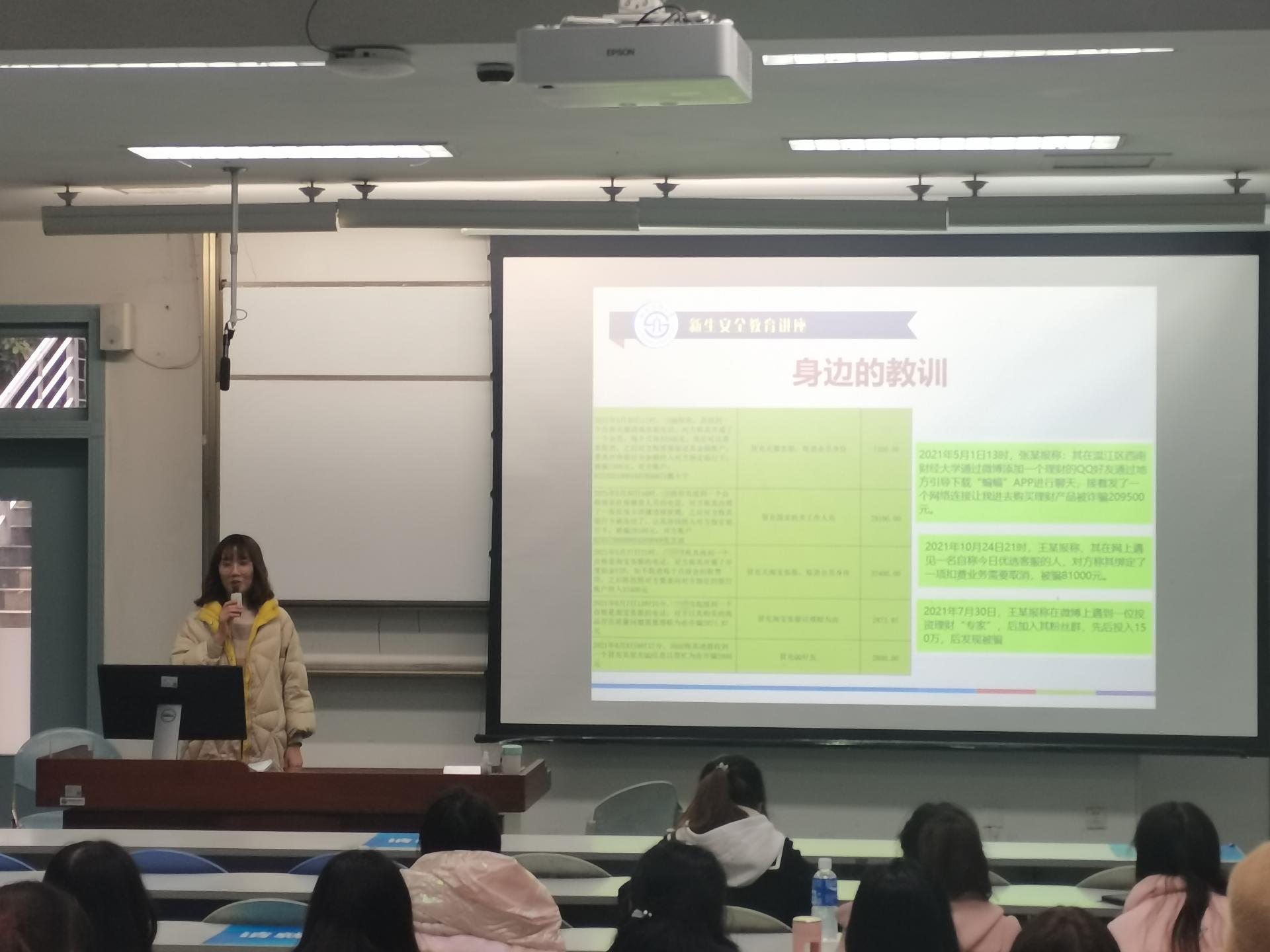 为提升学生安全防范意识,防范同学们人身安全和财产安全受到损害,2021年12月7日下午,会计学院学生成长与发展中心联合学校保卫处在经世楼E104举办防诈骗安全教育讲座。讲座邀请到yl1111永利集团保卫处黄海处长和胡晓蓉老师为会计学院五十余名同学讲述防诈骗安全教育知识。