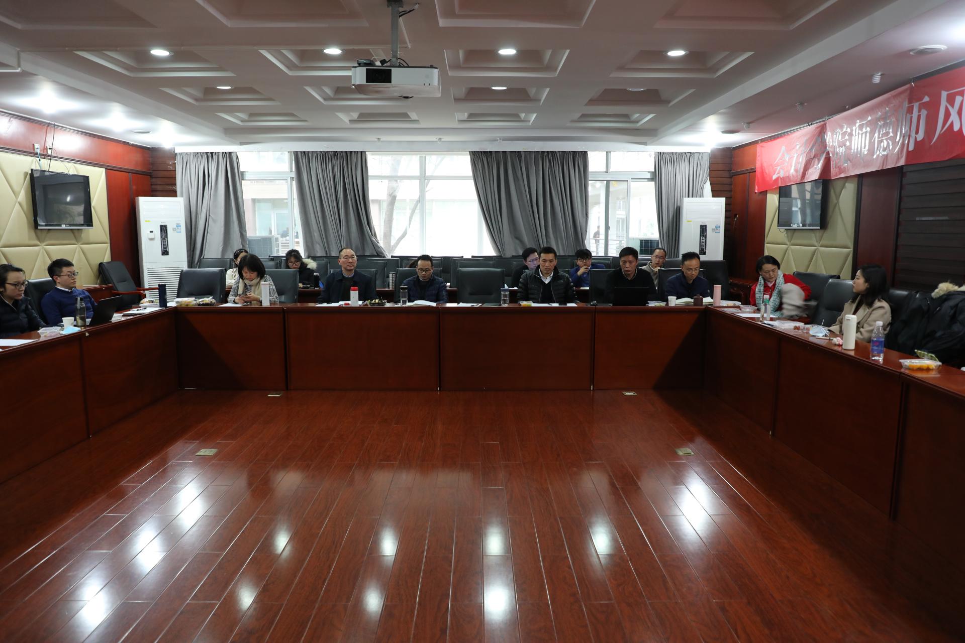 12月14日下午14:00,会计学院2021年度教师职业生涯规划答辩会暨青年教师师德师风建设座谈会在通博楼D201会议室举行。学院领导刘晓彬、唐雪松、谭洪涛,教授委员主席余海宗,系、所、教学与科研中心负责人,职业生涯规划指导人等年长教授共同担任本次答辩会专家,并与青年教师们开展了师德师风、教育教学、科学研究等方面的深入座谈,学校党委教师工作部副部长周立成到会指导。11位入职满三年的老师在会上做职业生涯评估答辩,6位新进教师全程参加。