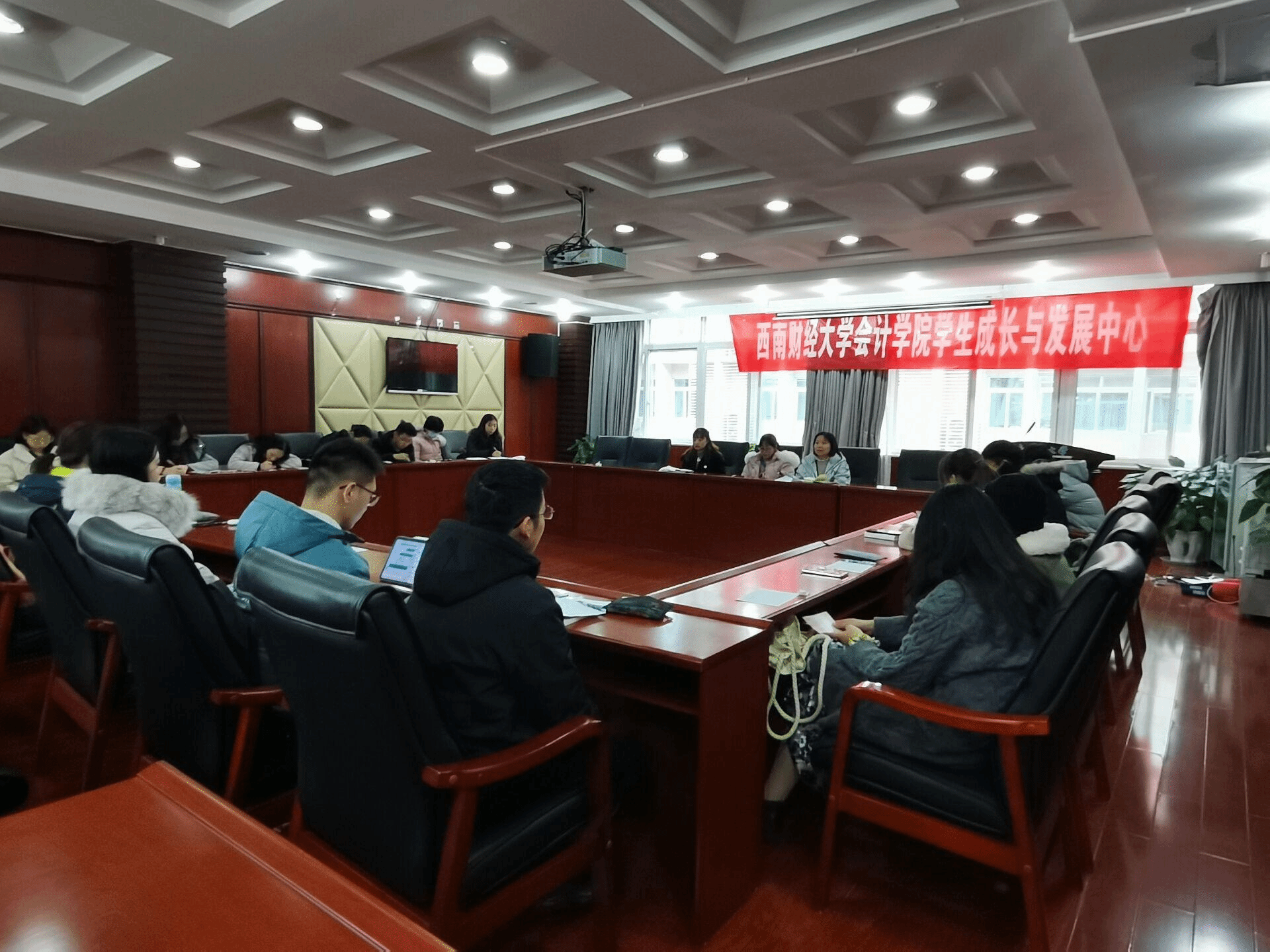 12月30日下午15时45分,会计学院学生成长与发展中心工作总结会议在通博楼D201会议室顺利举行,覃莹老师,肖苒老师,任虹老师以及学生成长与发展中心的成员参加了本次大会。会议由企划部成员胡雨涵主持。
