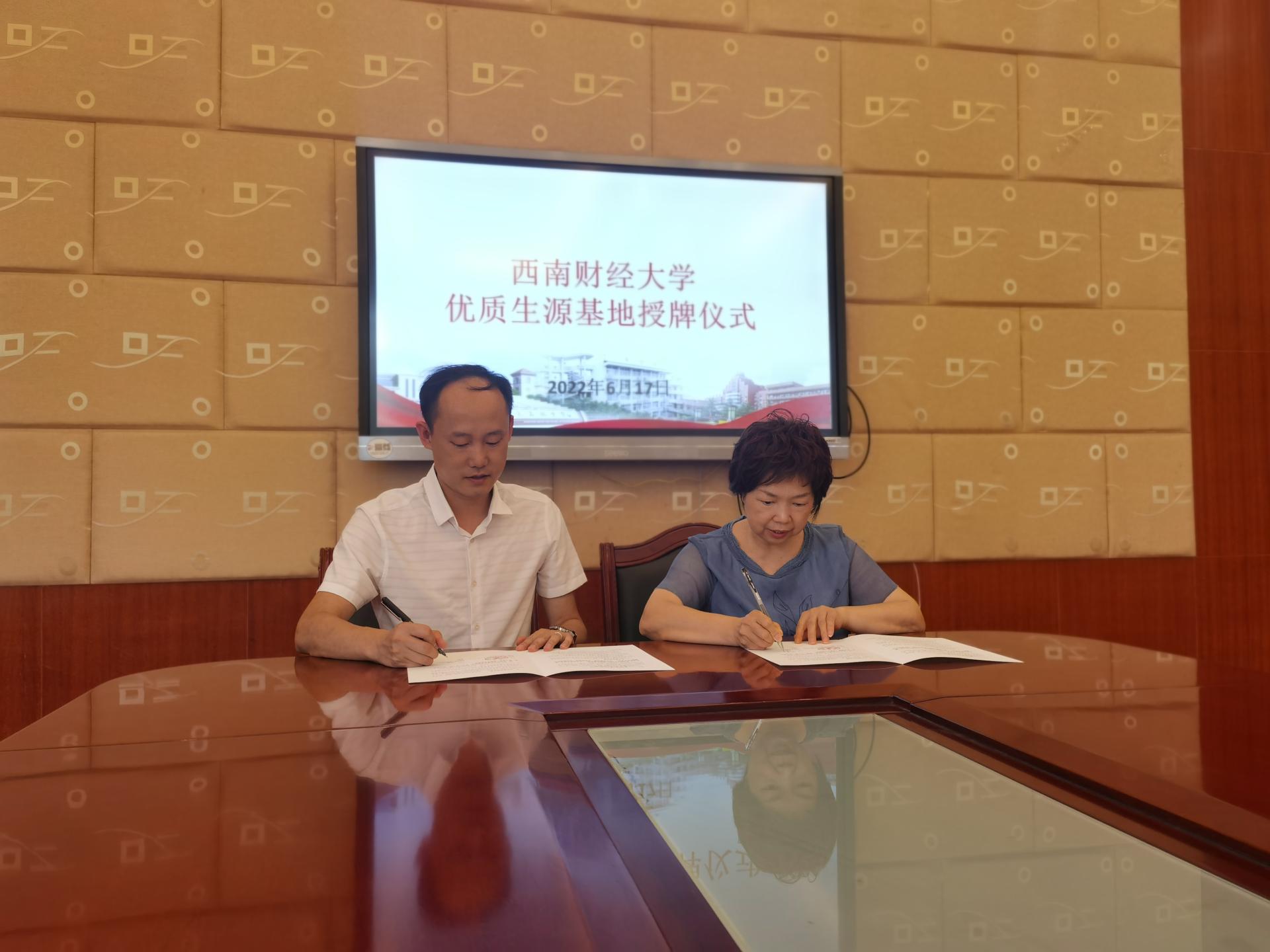 6月17日,会计学院团委书记刘坤、招生组联络人陈秋达前往四川省南充高级中学(顺庆校区)参加优质生源基地授牌仪式。刘坤老师向南充中学领导与老师介绍了yl1111永利集团的历史沿革、发展情况、学科特点以及完善的人才培养模式。南充中学副校长范爱筠介绍了南充中学的历史发展、办学亮点和升学情况。随后,双方签署了优质生源基地合作协议,刘坤老师授予南充中学“优质生源基地”牌匾。