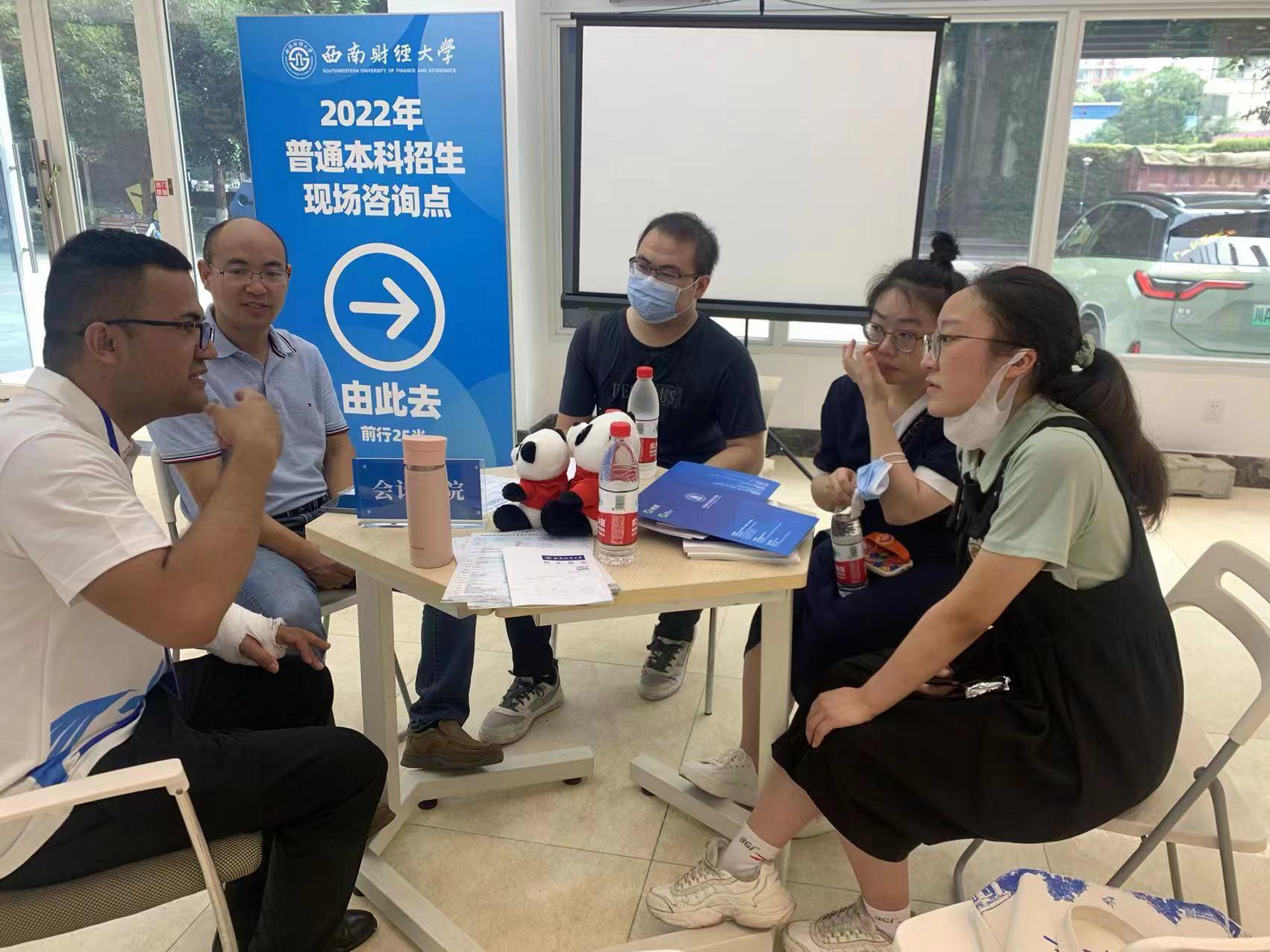 6月18日,会计学院团委副书记徐天然,国际交流办公室干事郝若欣参与新东方第53届国际教育展,为有意向申请中外合作办学项目的同学提供专场咨询。6月25日,会计学院党委副书记张太富,审计系系主任李越冬,会计系孙正捷参与了学校2022年度本科招生现场咨询会,与前来咨询的考生及家长进行一对一交流,详细询问考生高考成绩、专业兴趣等,对考生提出的问题悉心解答,并深入介绍我校办学特色和优势,鼓励考生积极填报西南财大。