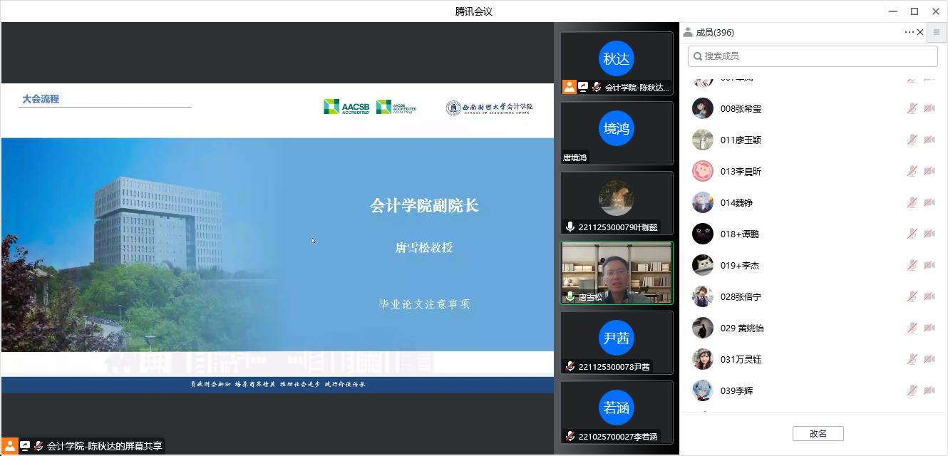 学院副院长唐雪松、易阳分享了最后一学年的学业规划建议,要把握的学业关建环节、毕业论文选题与写作、实习实践等方面的相关要求和注意事项。