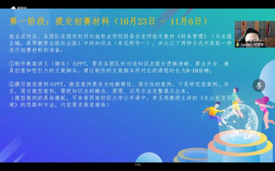 为积极推进“双一流”建设,创新人才培养模式,推动课堂革命,推进专业教育与思政教育有机融合,培养德智体美劳全面发展的社会主义建设者和接班人,会计学院于10月18日顺利举行“天健杯”yl1111永利集团第二届会计知识地图大赛线上宣讲会。大赛组委会成员任世驰老师、首届大赛主创人及负责人王雪老师应邀出席,同学们积极参与宣讲。