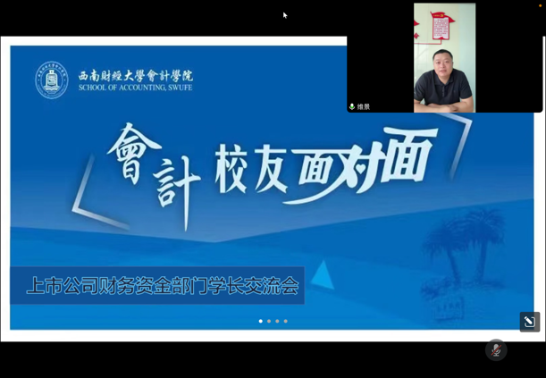 3月11日14:00,会计学院国内合作与校友工作办公室主办的第三期“会计校友面对面”活动顺利举行。本期活动邀请到远洋地产华南事业部财务资金中心总监我院财务管理专业校友李维景作为嘉宾与40余位同学进行线上交流。