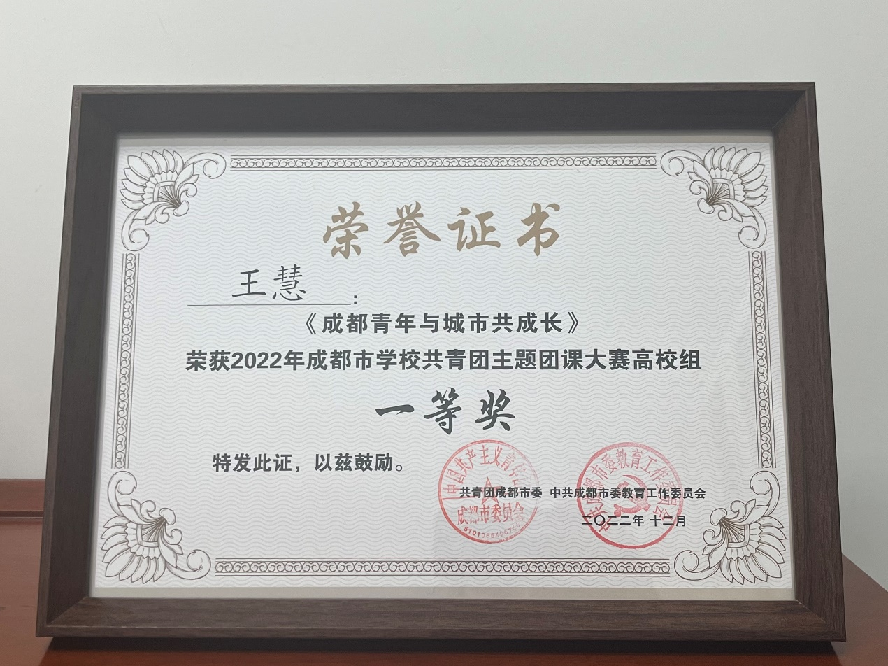 经过层层评选,我院王慧老师的团课作品《成都青年与城市共成长》获得2022年成都市学校共青团主题团课大赛高校组一等奖。