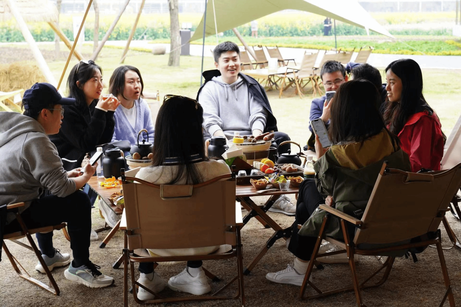 参观后,分工会成员进行了围炉煮茶的活动,升腾的炭火、古朴的器皿、土味的烤食,自己上手煮一壶茶别有一番风味。大家围坐在一起,拥炉闲话,谈笑风生。