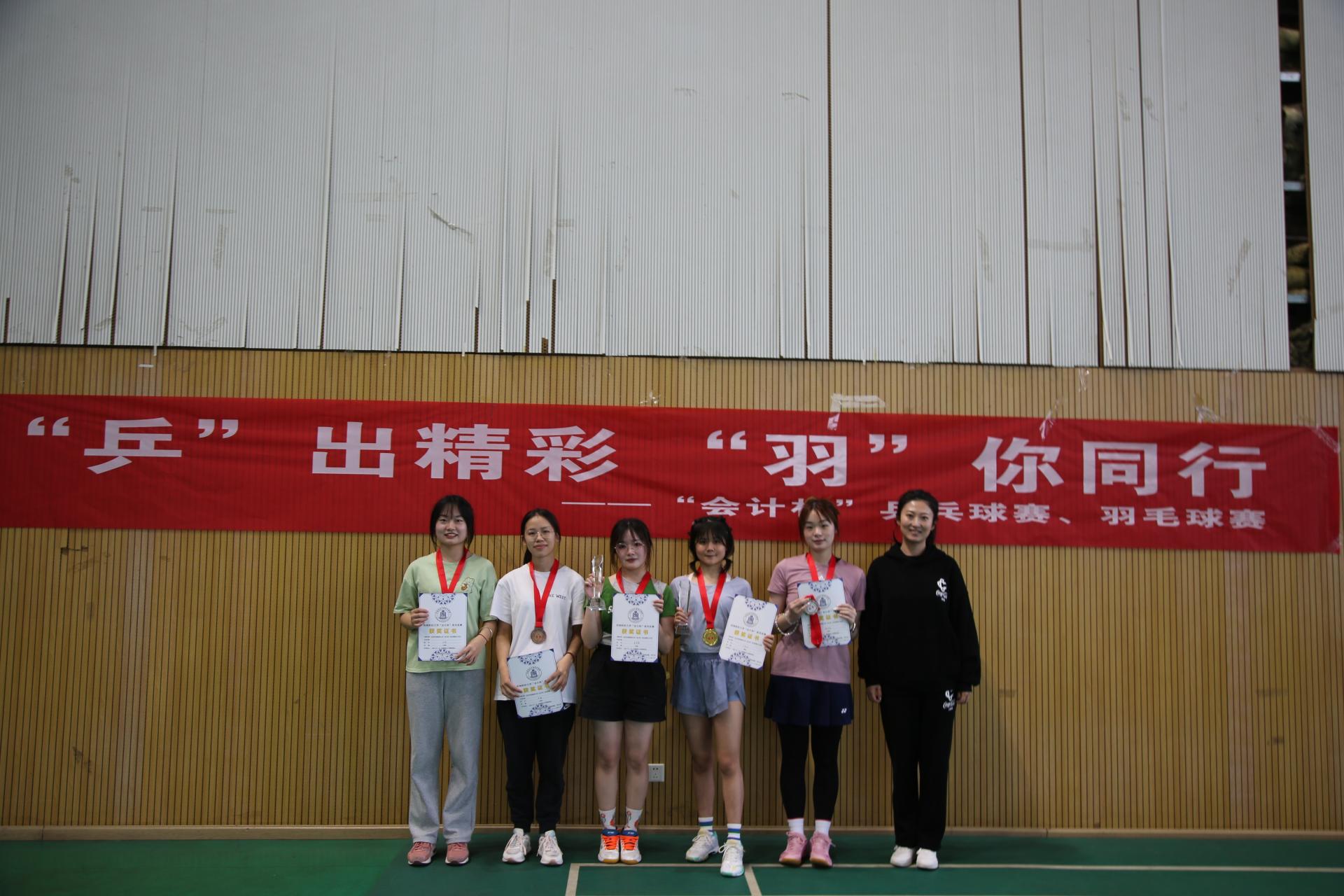 最后,比赛在体育馆举行了颁奖仪式,会计学院党委书记刘晓彬老师、团委书记王慧老师为获奖运动员颁奖。至此,第三届“会计杯”羽毛球赛至此圆满落下帷幕。期待在下一届“会计杯”羽毛球赛上见证更多师生的闪耀表现,期待“羽”你的再次相遇。