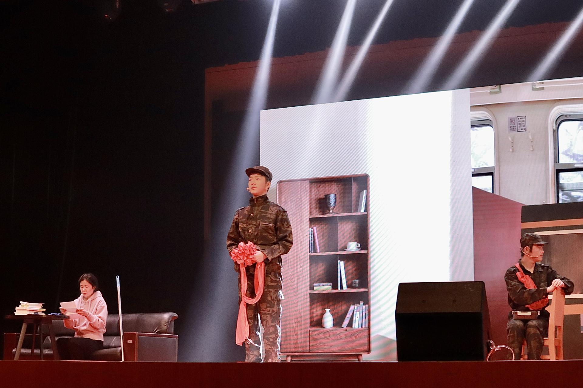 整场比赛精彩绝伦,八支队伍花样创新,为全场观众呈现了一场精美的视听盛宴。我院的《边关情》由“咚咚”的敲门声叩响,观众的目光跟随场景从教室到边关,观众的心绪跟随剧情从紧张到感动。紧扣实事、内容饱满,短剧讲述了立志驻守边关、起初不受母亲支持的小夏与同为新兵的小张在火车上结识、在军营中相知、在战场上共同战斗,而后小夏光荣牺牲、夏母理解支持,小张深受触动,放弃调任、坚守边关的故事。短剧的最后一段,小张归队升旗,在威严的国歌声中、在肃穆的军礼下,灼灼的爱国之情在边关升起。灯光渐渐暗淡,台下掌声雷动。《边关情》紧扣“爱国”的主题,展现了战友之情、家国情怀。