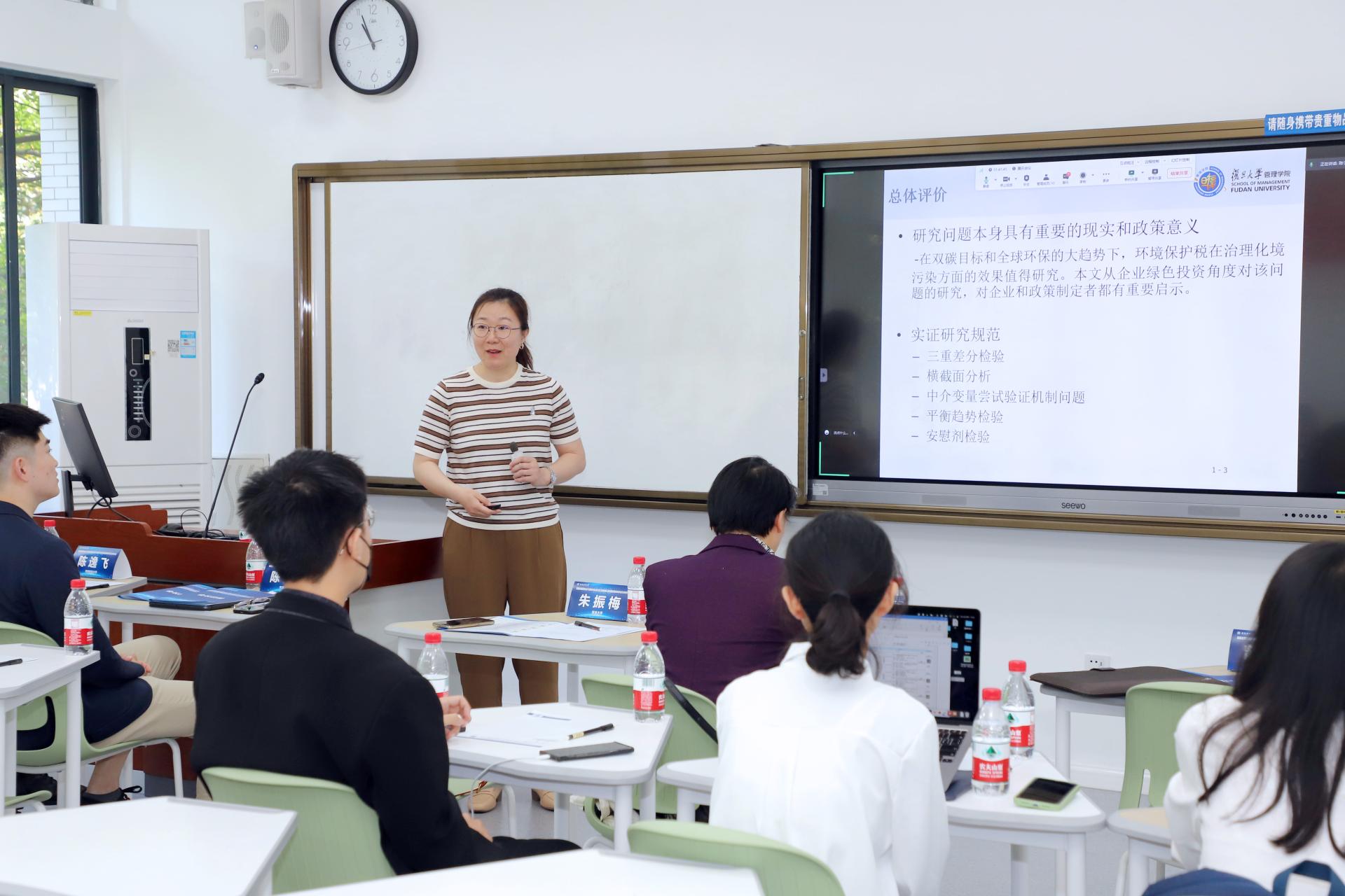 第三场平行论坛于14:45~15:45举行。第一分论坛由中南财经政法大学晏超老师主持,14:45~15:15中南财经政法大学晏超老师在中山大学江东航和张学志展示《权重望崇还是权重望寡?管理层上下级逆向年龄与企业风险承担》论文后提供点评;15:15~15:45yl1111永利集团杨奕楠老师在兰州大学汪京和陈曦展示《搜索一下你就得到:互联网搜索与企业信息透明度》论文后提供点评。第二分论坛由中南财经政法大学冉明东老师主持,14:45~15:15中南财经政法大学冉明东老师在中央财经大学闫皓安、吴锴以及斯蒂文斯理工学院刘益展示《Cheap Money Talk: Banking Liberalization and Corporate Innovation in China》论文后提供点评;15:15~15:45yl1111永利集团王志老师在吉林大学姜晓彤、林煜恩以及国立东华大学池祥萱展示《Does the relationship between intangible capital and firm performance differ across companies with and without greenwashing?》论文后提供点评。第三分论坛由yl1111永利集团曾昌礼老师主持,14:45~15:15yl1111永利集团曾昌礼老师为浙江大学李姗灿、刘兰希和邓千寻展示《财务共享建设与现金持有水平——来自A股上市公司的经验证据》论文后提供点评;15:15~15:45yl1111永利集团唐富君老师在华东理工大学柏天乐和严思远展示《Demystifying the impact of corporate digital transformation on innovation: the differential roles of digital infrastructure》后提供点评。第四分论坛由yl1111永利集团陈磊老师主持,14:45~15:15yl1111永利集团陈磊老师在yl1111永利集团宏琪展示《数字经济发展与企业供应链集中度》论文后提供点评;15:15~15:45yl1111永利集团赵柯意老师在中国石油大学(华东)张星宇展示《监管型小股东与企业ESG表现——来自投服中心行权的证据》论文后提供点评。