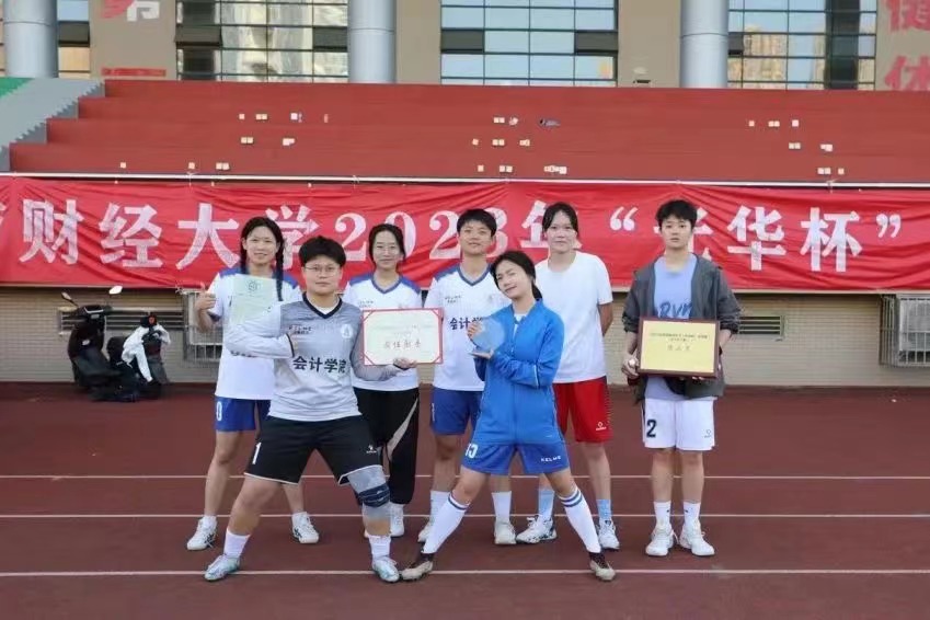 2023年4月25日,为期两周的“光华杯”足球赛于柳林校区落下帷幕。在各位球员的努力拼搏与默契配合下,会计学院足球队过五关斩六将,最终取得了女足第二名、男足第四名的优异成绩,来自2021级财务管理专业的毛鑫雨同学获得最佳射手称号!