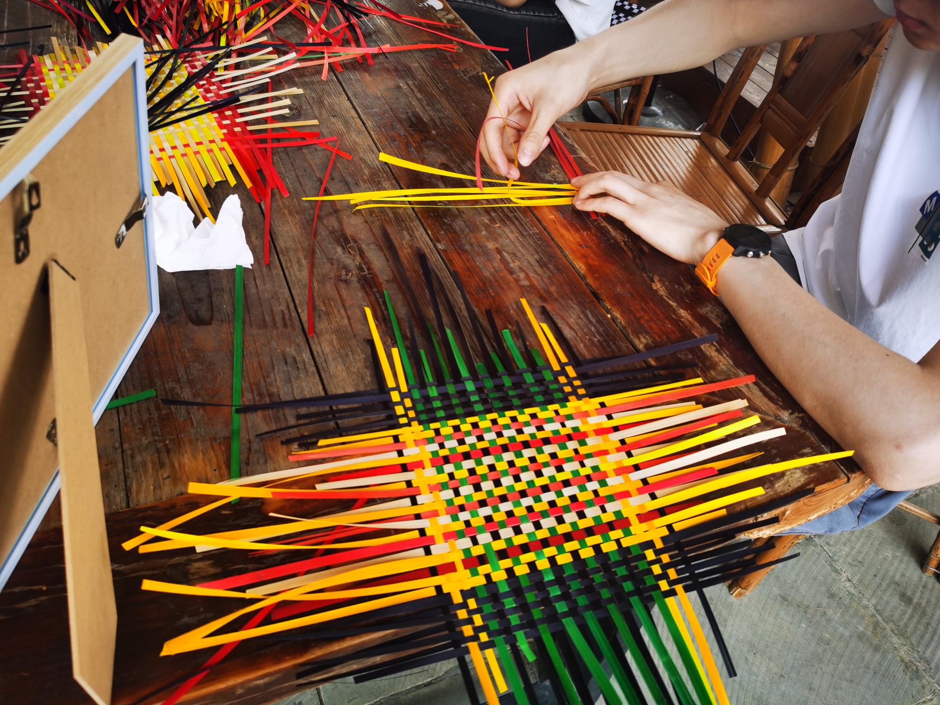 活动中,同学们观看了非遗竹编宣传片,聆听讲解人员讲解竹编艺术和传承,更好的理解了竹编艺术和竹编传承的重要意义。在竹编师傅们的带领下,同学们开始动手编制制竹编工艺品,亲身体验竹编的魅力所在,通过自己的双手将一根根竹条穿插,制作出各式各样有着丰富内涵的竹编工艺品。最后,同学们拿着自己亲制的竹编工艺品合影留念。