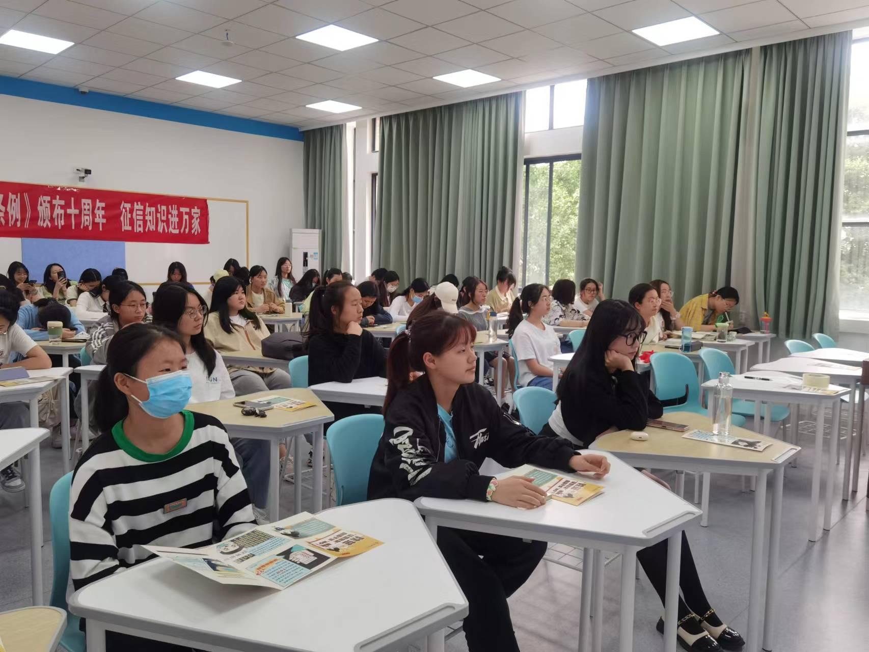 活动开始,肖丽萍女士首先为同学们分发了征信宣传册,呼吁同学们警惕校园贷等不良贷款的风险。随后,肖女士分别从征信具体案例、征信应用领域、对待征信的正确态度这三个方面,引导同学们逐步加深对征信的认识与理解。在宣讲中,肖女士介绍了校园贷的套路以及防范校园贷的方法,讲解了查询个人征信的途径——通过微信公众号“天府信用”或“云闪付”软件,还教会了同学们如何读懂个人征信报告、如何保护好自己的个人信息、如何警惕“征信修复”骗局等征信知识。活动最后,同学们积极参与有奖竞答,巩固了所学的征信知识。