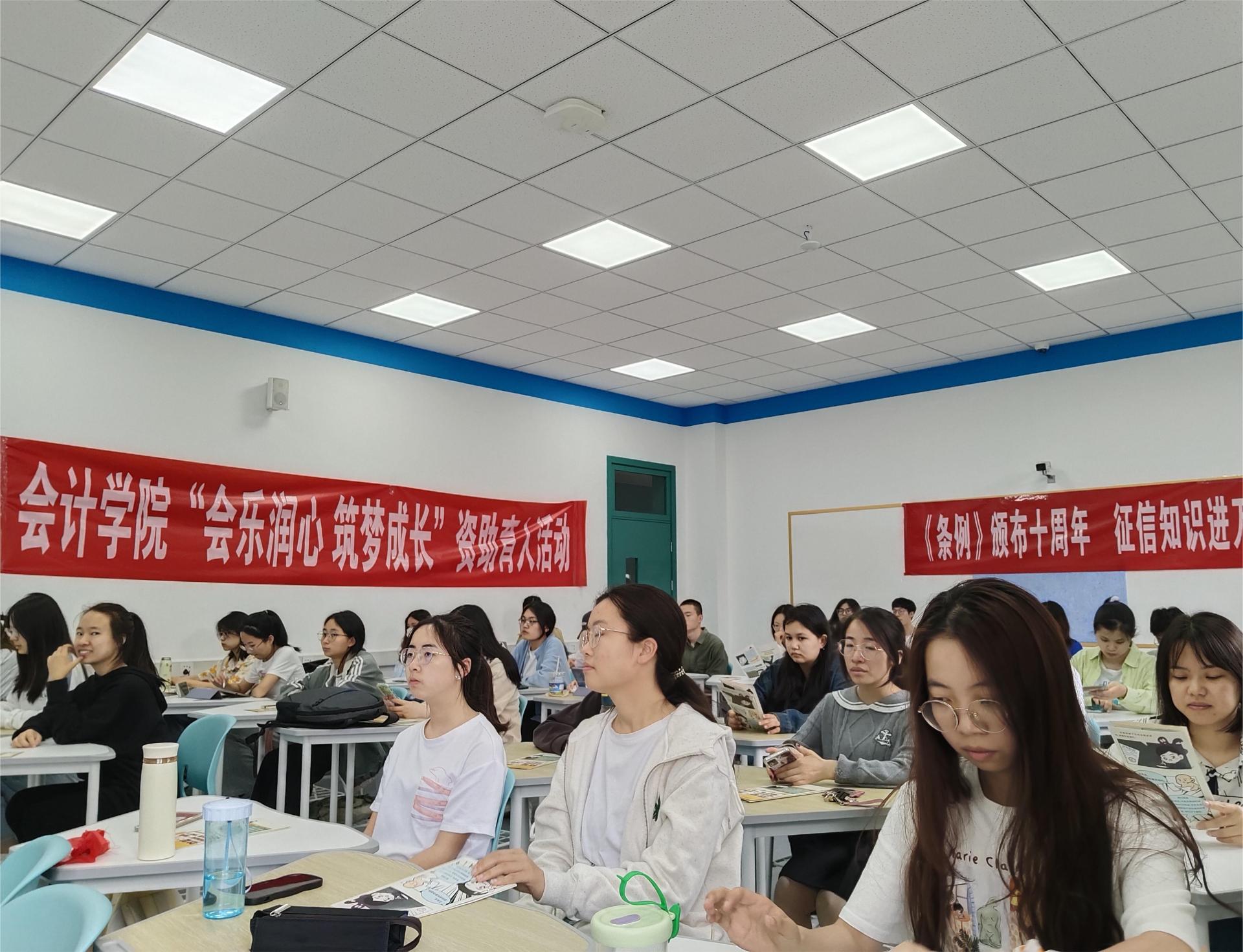 5月23日下午,会计学院于经世楼B301开展了主题为“拒绝校园贷,青春不负债”的资助育人活动。本次活动邀请了成都银行高升桥支行征信管理员肖丽萍女士为同学们普及征信知识,引导同学们树立正确的征信观。