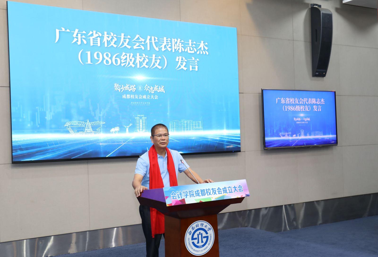 广东省校友会代表、86级校友陈志杰代表兄弟校友会发言,共同祝贺会计学院成都校友会顺利成立。