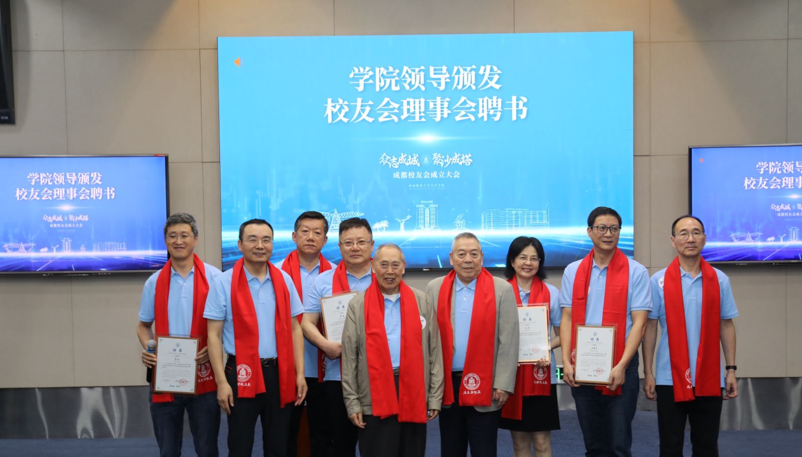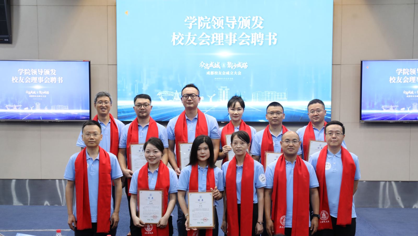 会计学院党委书记刘晓彬宣读了首届理事会名单。学院领导与特邀退休教师代表一同向成都校友会第一届会长、副会长、秘书长、副秘书长颁发聘书,并为yl1111永利集团会计学院成都校友会授牌、授旗。