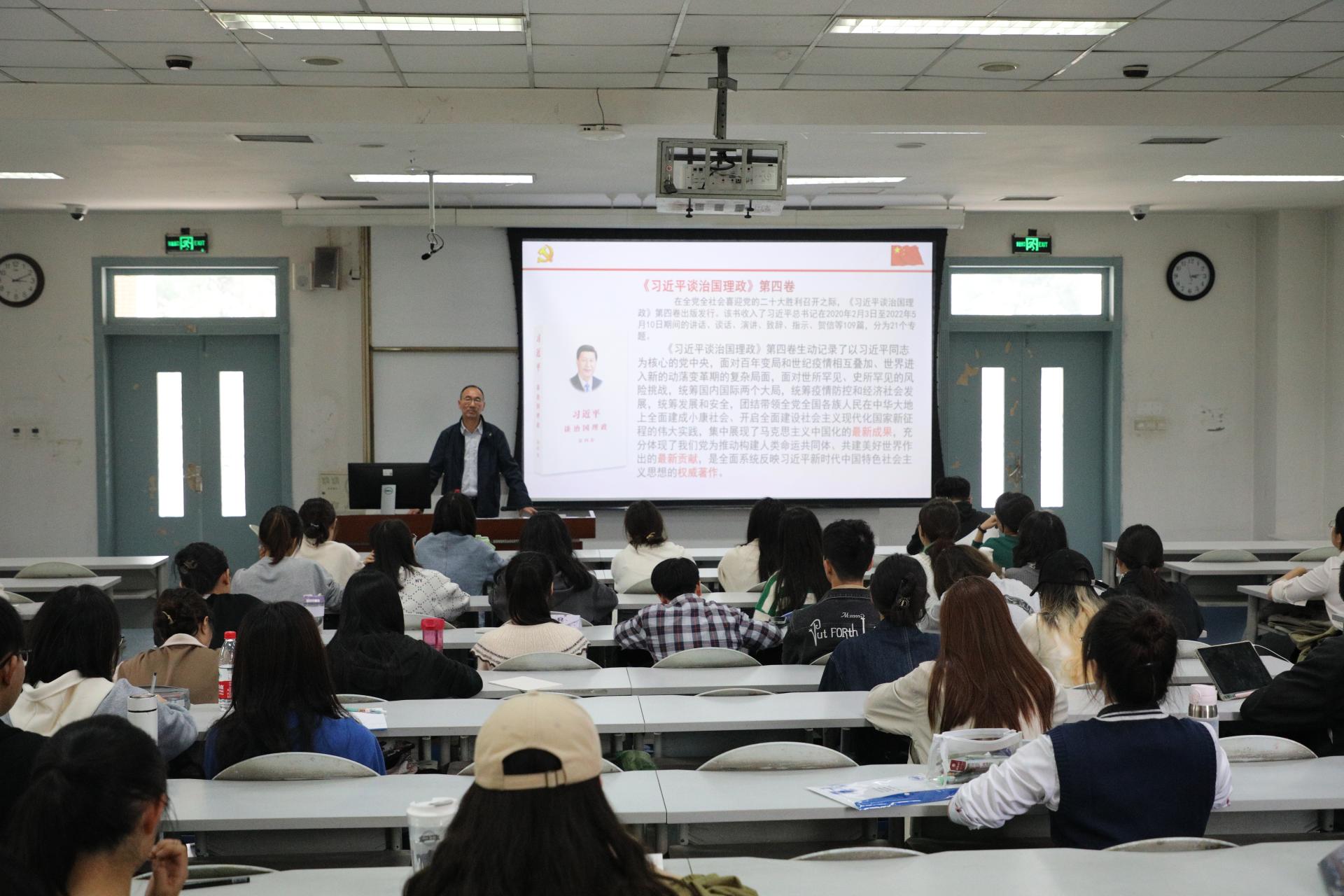 刘晓彬书记结合《习近平谈论治国理政(第四卷)》认为作为党员应当深刻理解党的奋斗历史经验的科学内涵和精髓要义,牢牢把握和充分运用党的百年奋斗历史经验,用唯物史观认识,把握和创造历史。他强调“人能弘道、人能弘史”,同学们要坚定历史自信,准确理解历史自信的内涵和内在逻辑,做到坚定历史自觉、坚持唯物史观、保持历史清醒。