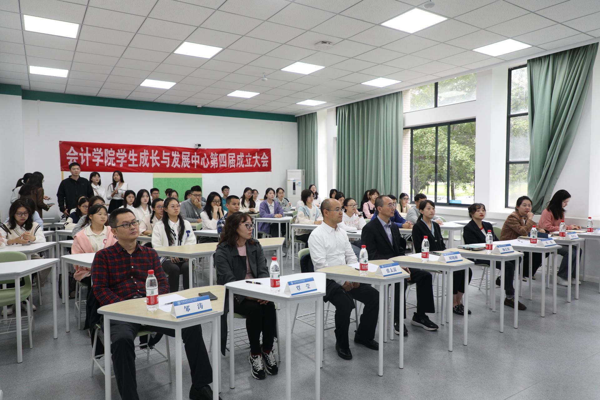 2023年10月17日星期二下午,会计学院第四届学生成长与发展中心成立大会在经世楼B105活动室隆重举行。会计学院党委书记刘晓彬,党委副书记张太富,党委副书记杨长虹,学生成长与发展中心指导老师覃莹、肖苒、陈秋达、,邹涛和张宇阁出席大会。第三届和第四届成员参加大会。成立大会由资源拓展部部长陈欣怡主持。