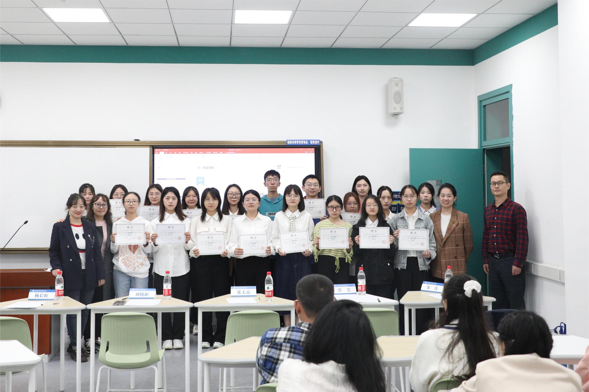 会议中,主持人以视频方式带领全体与会者回顾了2022-2023年学生成长与发展中心的工作成果。老成员代表高雅琪和新成员代表张琪悦分别发言,表达了对过去工作的总结和对新学期工作的展望。学院领导和中心指导老师为老成员颁发了优秀部员证书,聘书和推荐信并合影留念。