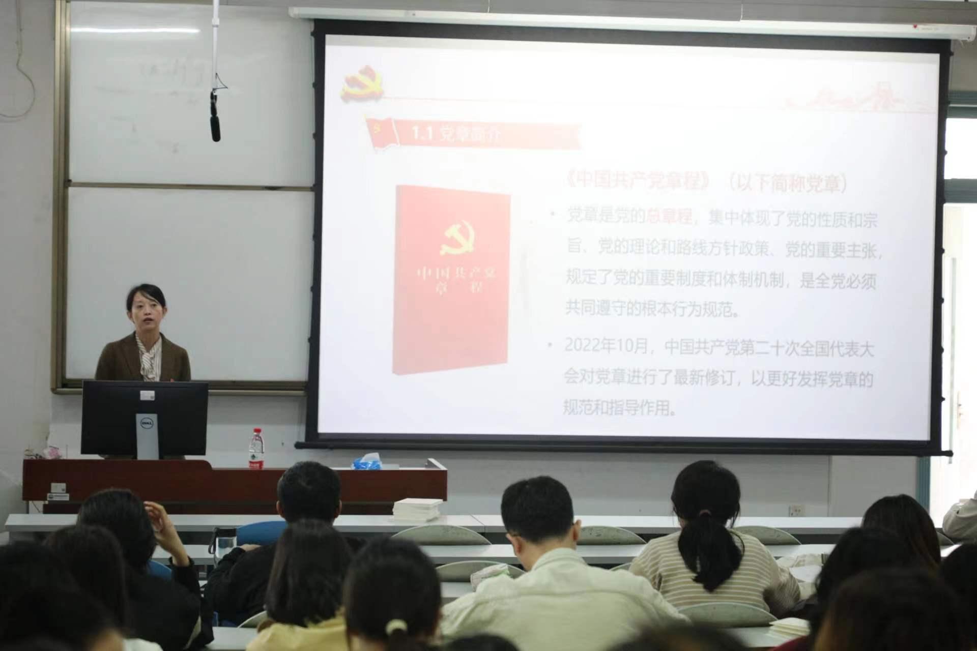 杨长虹书记通过详细讲解《中国共产党章程》的内容和历次修订历程,说明党章是与时俱进的章程,是全党的行为规范和根本遵循,深入学习理解党章,有利于贯彻落实党的精神,并用党的精神指导实践。并教导同学们要牢记党的性质、立场、观点、路线、方针与政策,以党员的标准严格要求自己,明确自己的责任担当,坚持为中国人民谋幸福、为中华民族谋复兴的初心和使命。