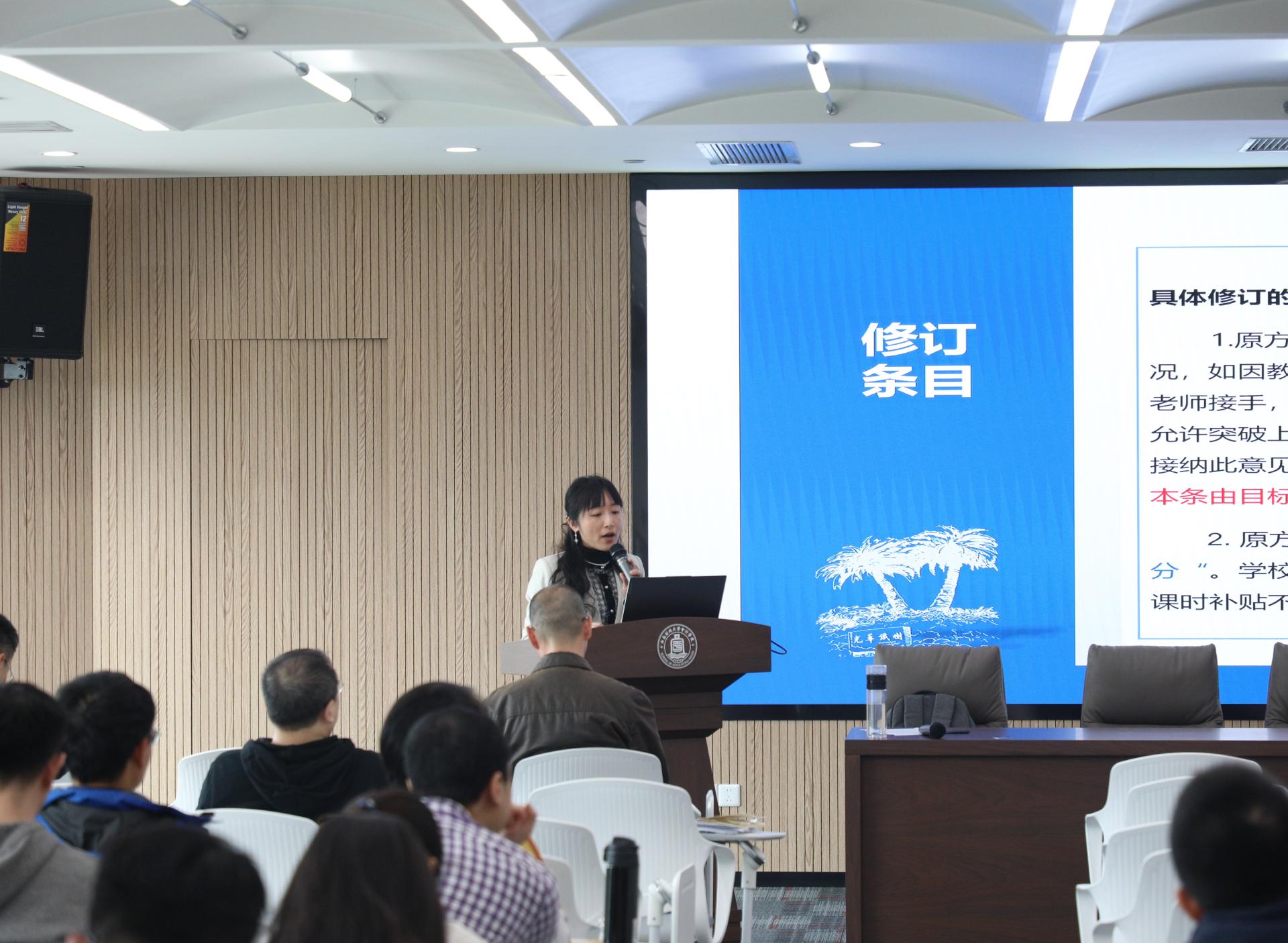 院长助理吴颖洁向全体教师再次解读了教师目标绩效考核标准新修订的条目内容。刘晓彬结合目标绩效考核改革开展师德师风专题教育,强调教师要蕴养西财情怀,传承会计优秀传统,坚守底线红线,把立德树人贯彻落实到行动的方方面面,不断提升道德修养和育人技能,以人格魅力、专业实力影响感染、教育引导学生。