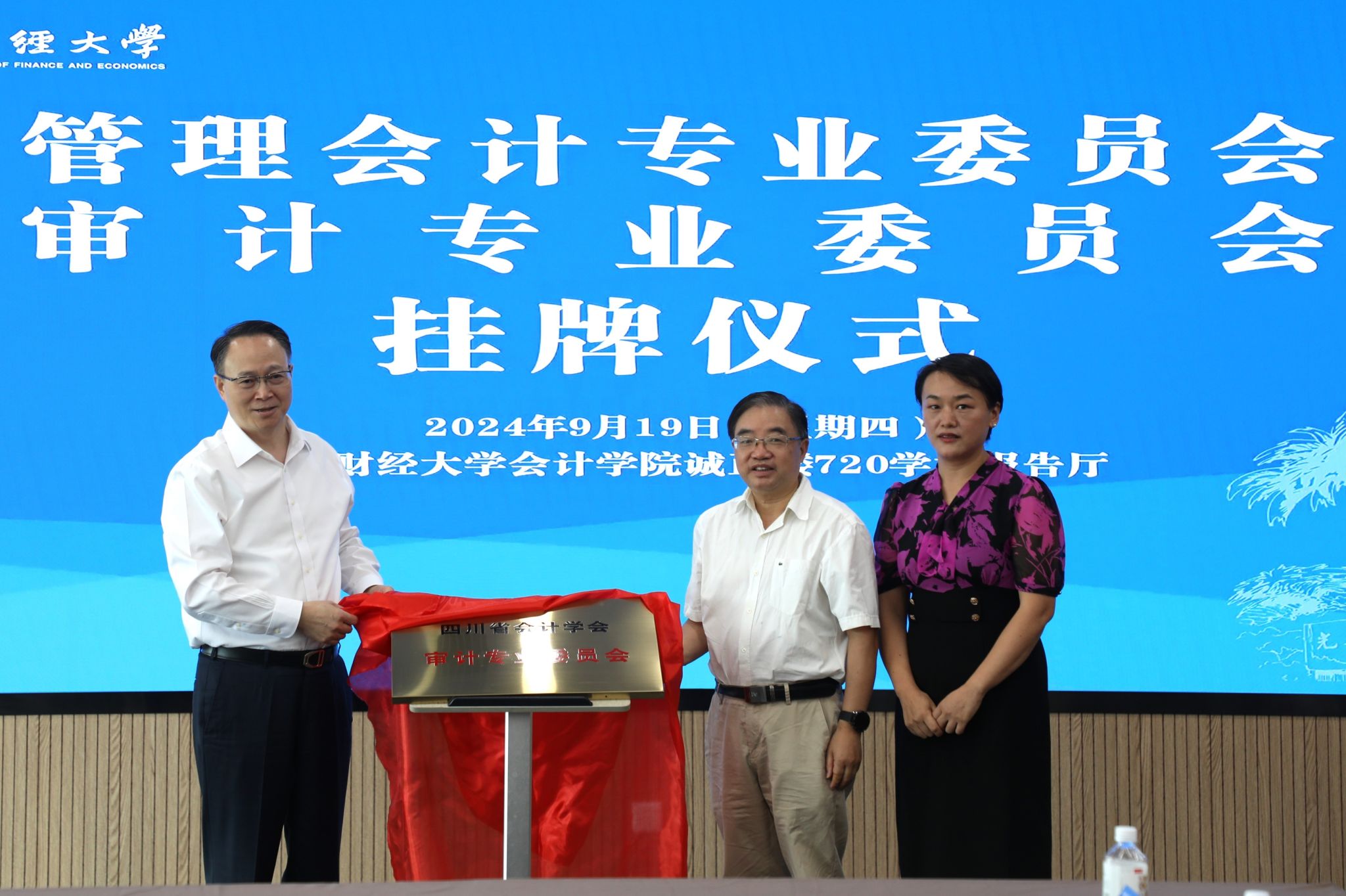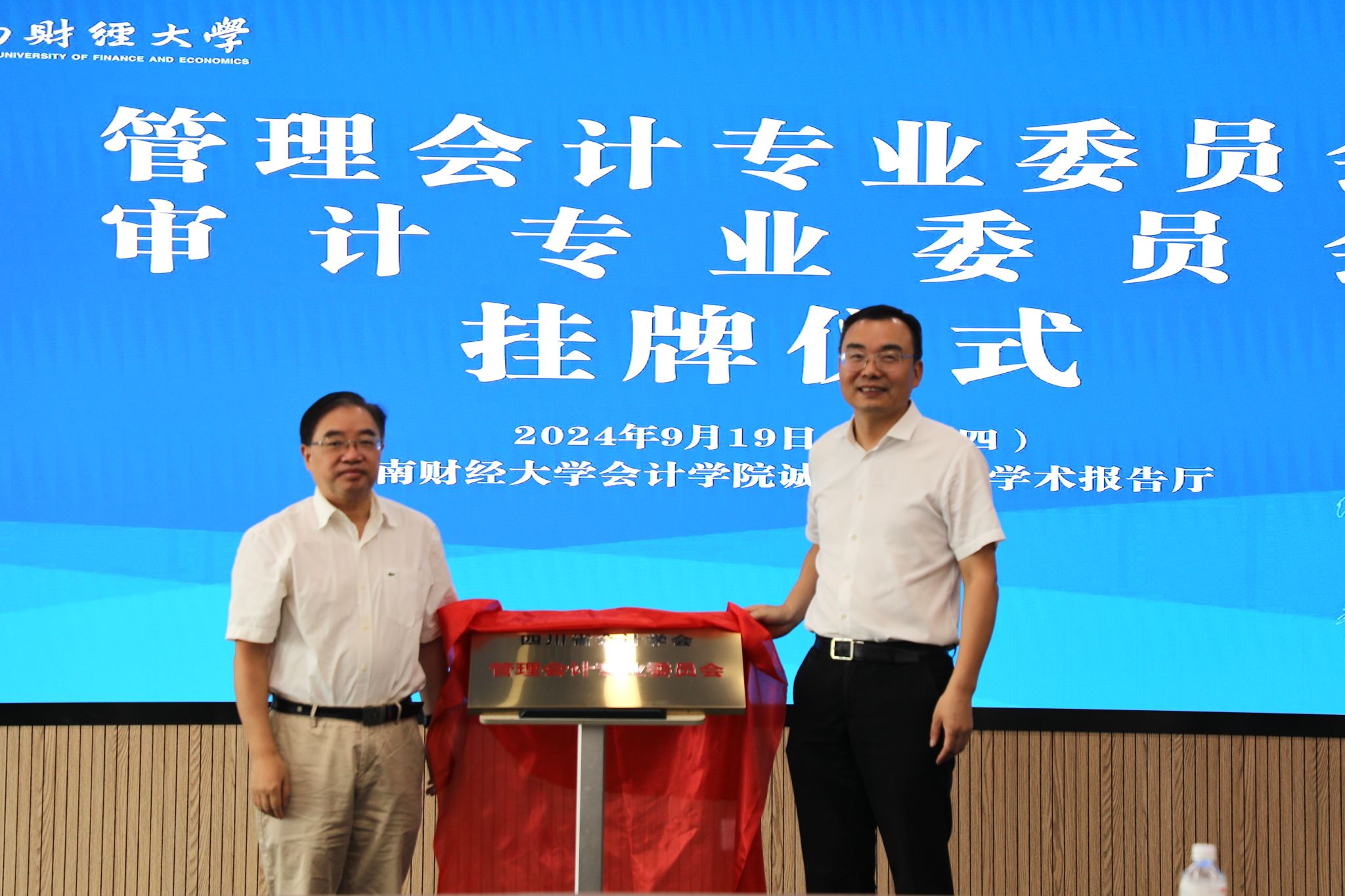 9月19日上午,管理会计专业委员会与审计专业委员会挂牌仪式在yl1111永利集团诚正楼720学术报告厅圆满举行。学校党委常委、副校长、会计学院院长马永强,四川省会计学会会长黄友等出席仪式并致辞。来自四川省会计学会、审计专委会、管理会计专委会等50余名专家学者参加会议。本次会议由会计学院副院长唐雪松主持。