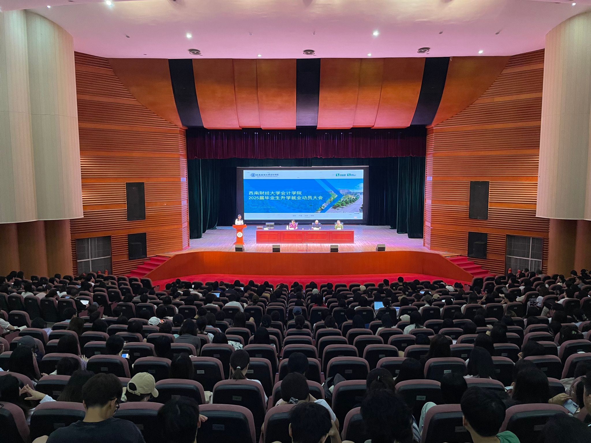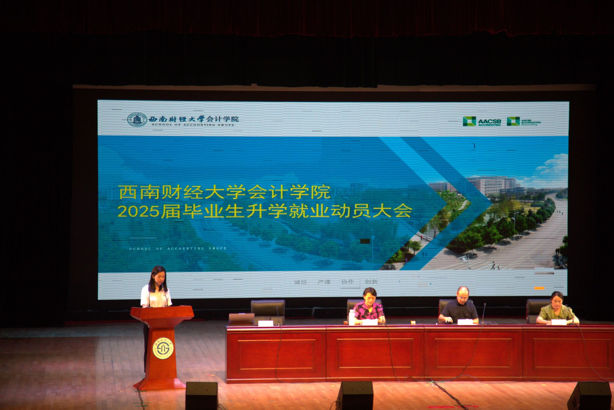 为切实做好2025届毕业生升学就业工作,帮助学生实现积极就业和高质量就业,6月22日上午,会计学院于学生活动中心800人厅成功举办了2025届毕业生升学就业动员大会。会计学院党委副书记张太富,审计系系主任李越冬,学校学生职业规划和就业指导中心校园招聘负责人李清涛和本科毕业班辅导员出席会议。本次会议由会计学院学生成长与发展中心陈秋达老师主持,学院2025届本科学生以“线上+线下”相结合的方式参与了本次会议。