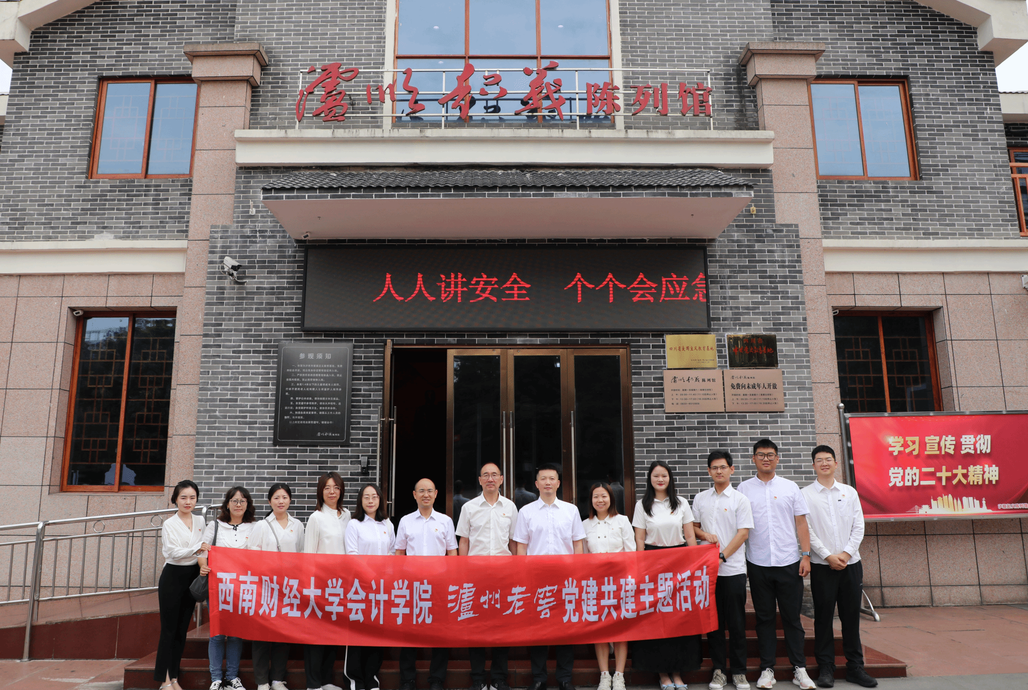 为传承和弘扬长征精神,进一步丰富学院党建活动形式、促进学院党建与企业党建共建互鉴,6月13至6月15日,会计学院党委书记刘晓彬、副书记张太富带队前往四川长征干部学院泸州四渡赤水分院,与泸州老窖开展“学习新思想 建功新时代——党建共建暨红色研学活动”,学院教师党支部及博士研究生党支部党员代表参加。
