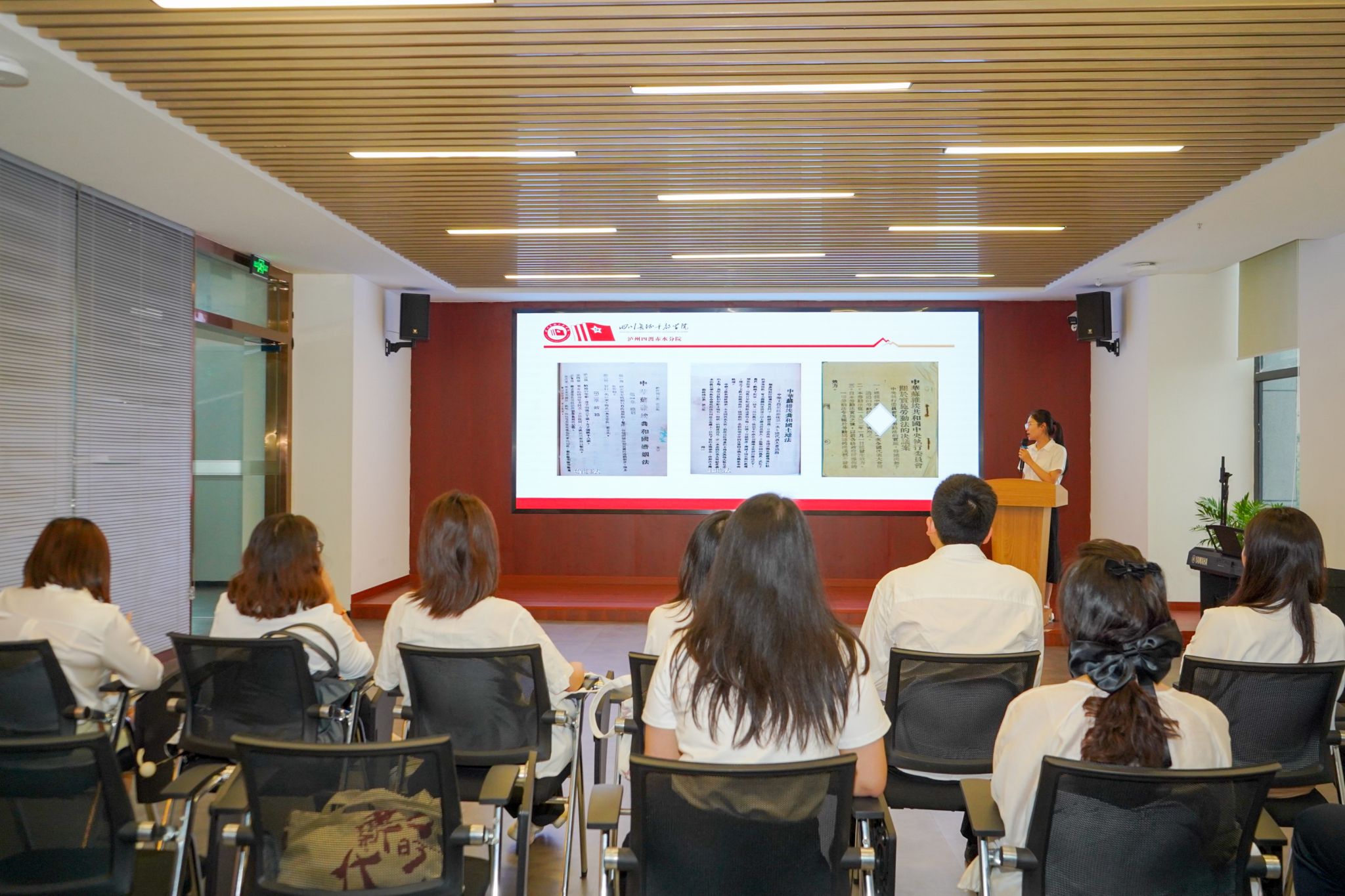 学院党员教师们与泸州老窖代表一行联合组建研习班,在四川长征干部学院泸州四渡赤水分院举行了简短的开班仪式,随后开始党史学习课程,三位老师结合红军四渡赤水史实,为大家讲授了震撼人心的微党课。学员们走进四渡赤水沉浸式体验教育馆,在讲解员的带领下,认真了解红军四渡赤水的背景、经过、历史地位和重大意义。