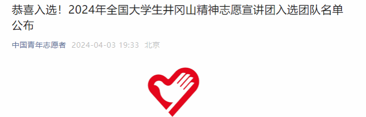 为深入学习宣传贯彻习近平新时代中国特色社会主义思想和党的二十大精神,团中央青年志愿者行动指导中心联合相关单位,发布《关于遴选2024年全国大学生井冈山精神志愿宣讲团的公告》、《关于遴选2024年全国大学生“乡村振兴”志愿服务团的公告》、《关于遴选2024年关爱行动“七彩假期”志愿服务团的公告》。会计学院“光华凌峰志愿队”、“彝路生花志愿服务队”、彩虹“1+N”书信实践队成功入选。