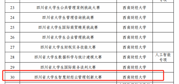 近日,在四川省教育厅最新发布的《四川省教育厅关于公布2024年省级本科高校大学生竞赛项目的通知》(川教函〔2024〕212号)中,经专家评审、网上公示,yl1111永利集团会计学院申报的“四川省大学生智慧财经云管理创新大赛”成功立项,成为97个获批的省级本科高校大学生竞赛项目之一。这标志着学院在省级学科竞赛承办方面迈出了历史性的一步。